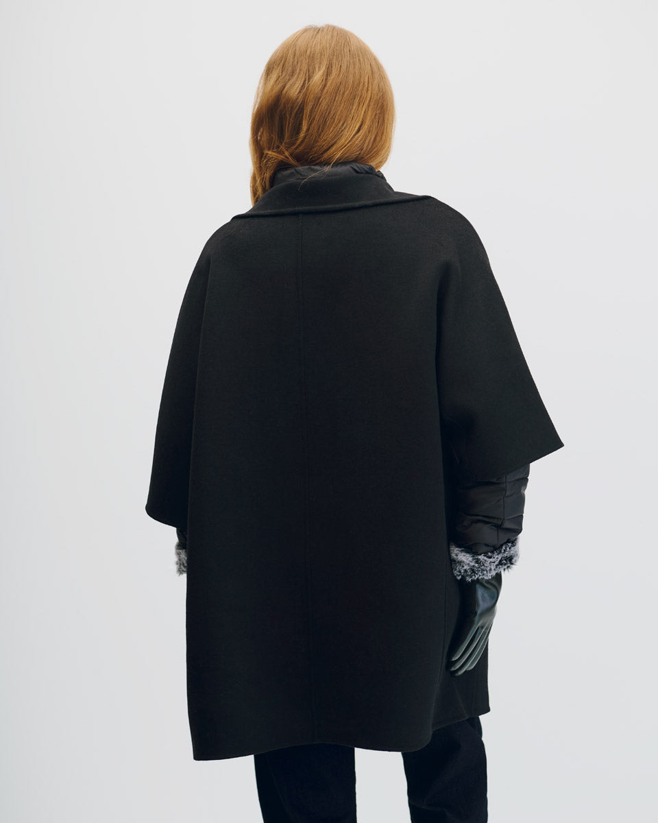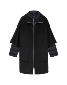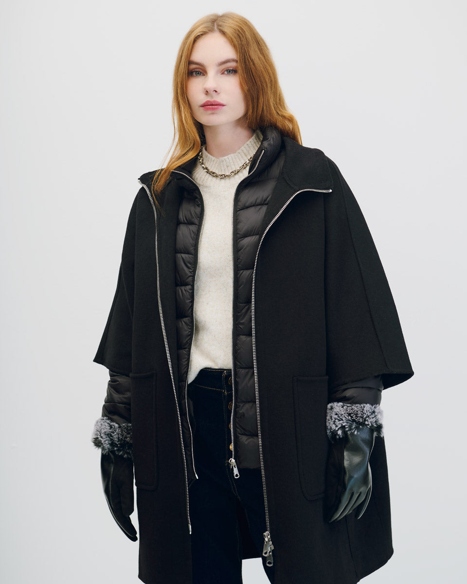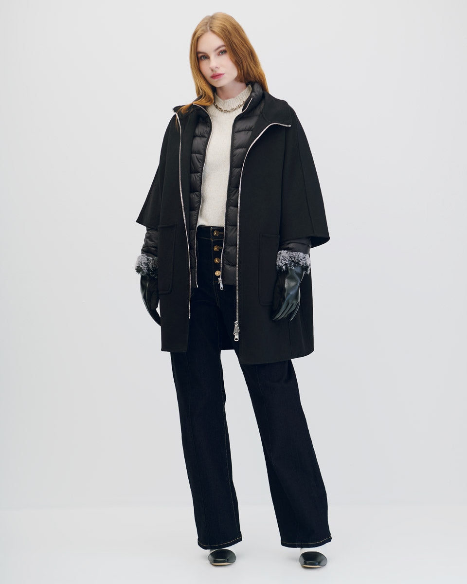 El abrigo negro con chamarra capitonada integrada ofrece estilo y funcionalidad en una sola pieza. Los maxibolsillos aportan un aire contemporáneo y práctico, mientras el diseño bicolor lo hace destacar. Ideal para días fríos o looks urbanos. Combínalo con jeans oscuros JULIO y una blusa de punto para un outfit casual con elegancia.