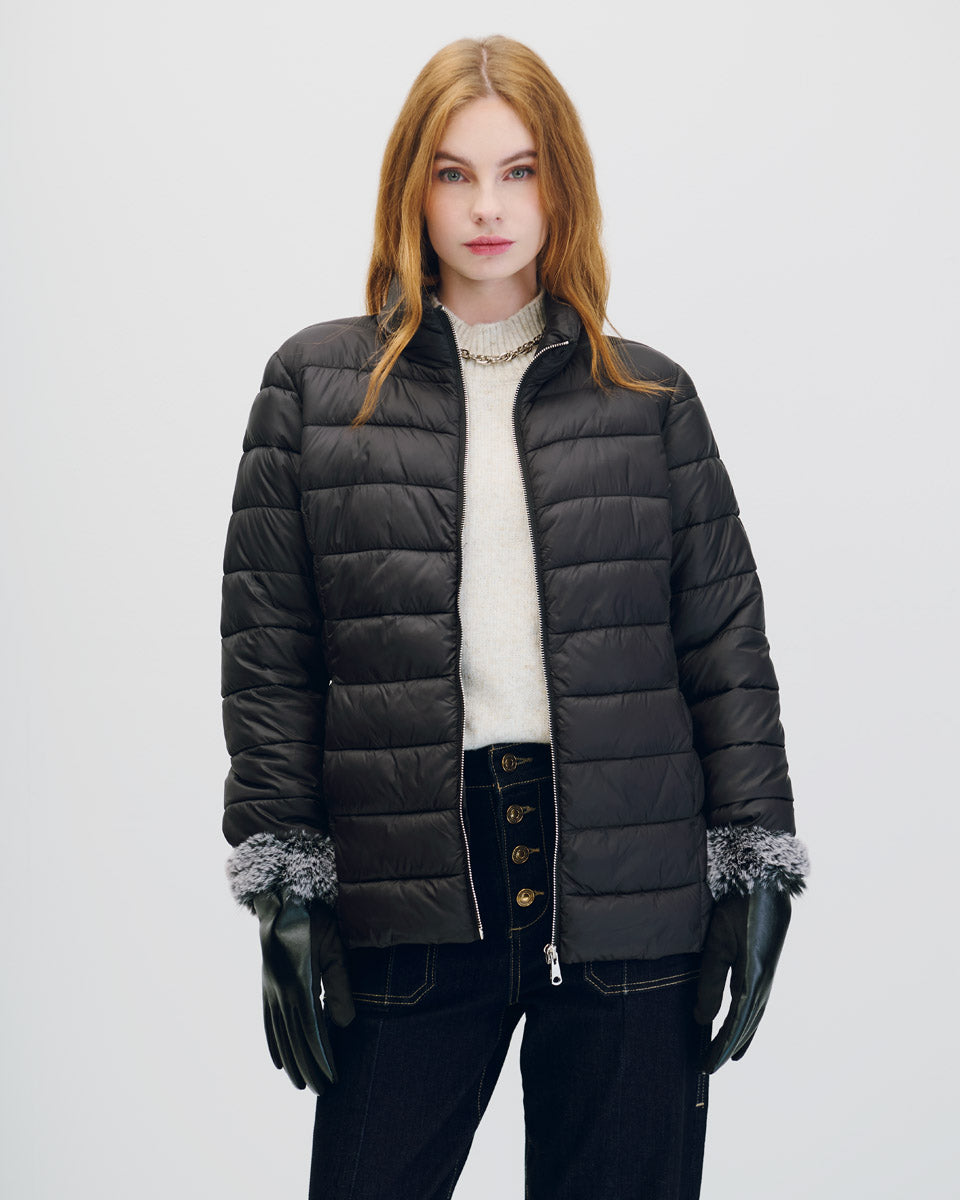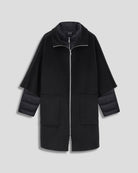 Abrigo Con Chamarra Capitonada Negro Y Maxibolsillos