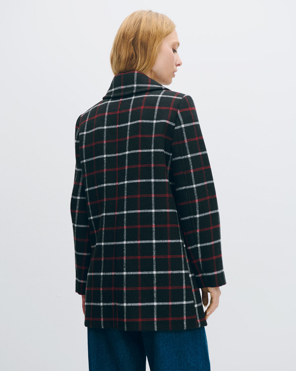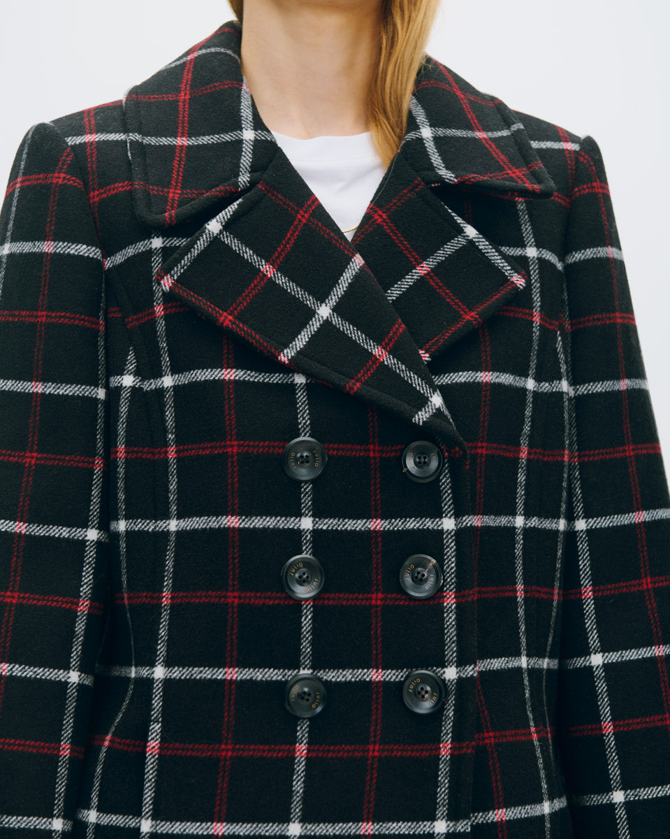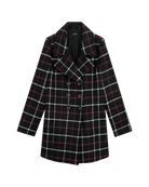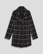 Abrigo Negro Largo Cruzado De Cuadros Rojos