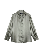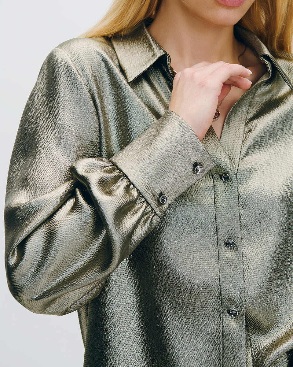 Blusa Camisera De Chifón Corrugado Dorado Metalizado