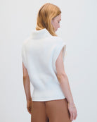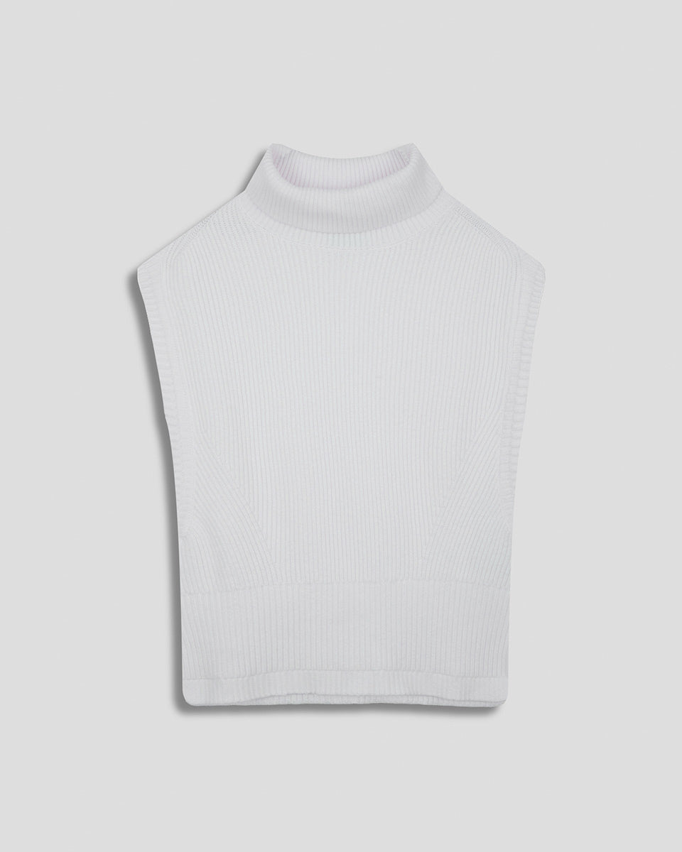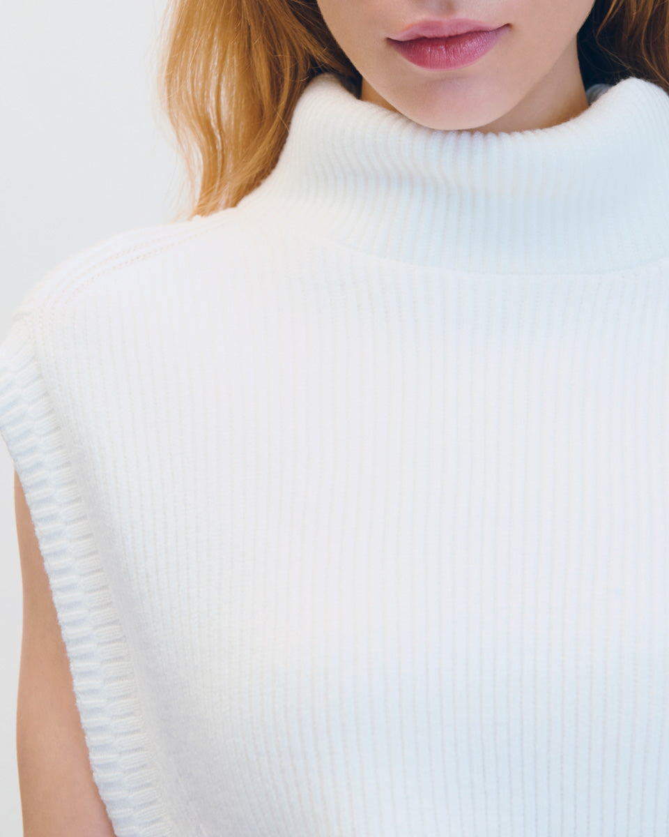 Chaleco Blanco Tejido Combinado Canalé Cuello Tortuga