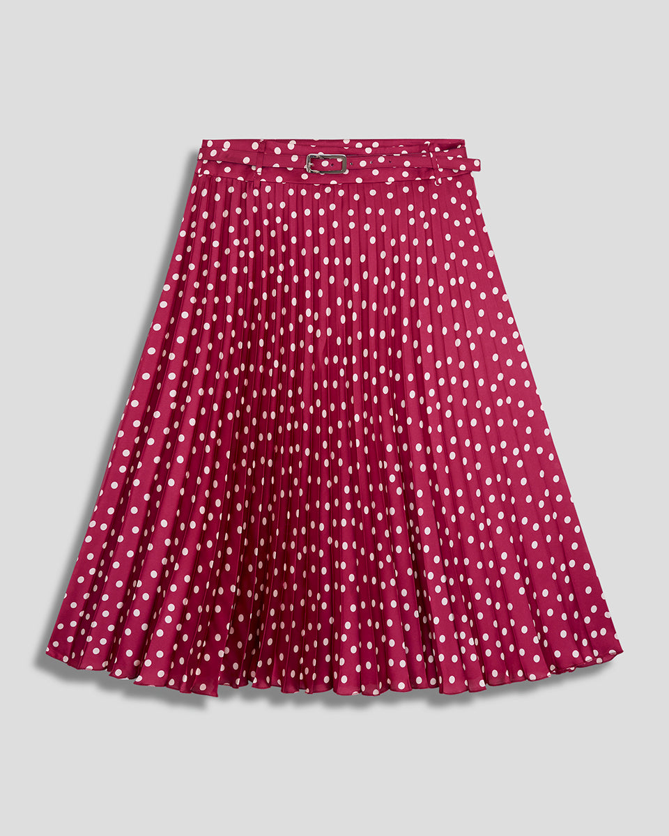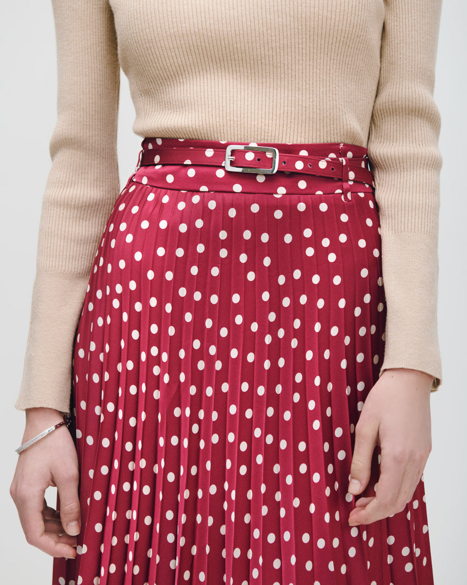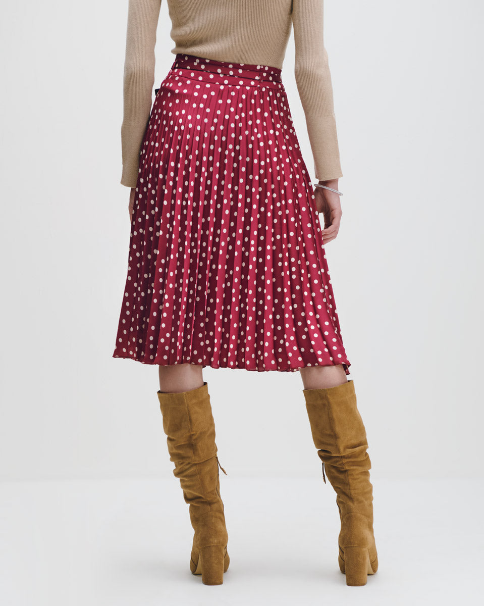 Falda Midi De Satín Plisada Burdeos Estampado Lunares