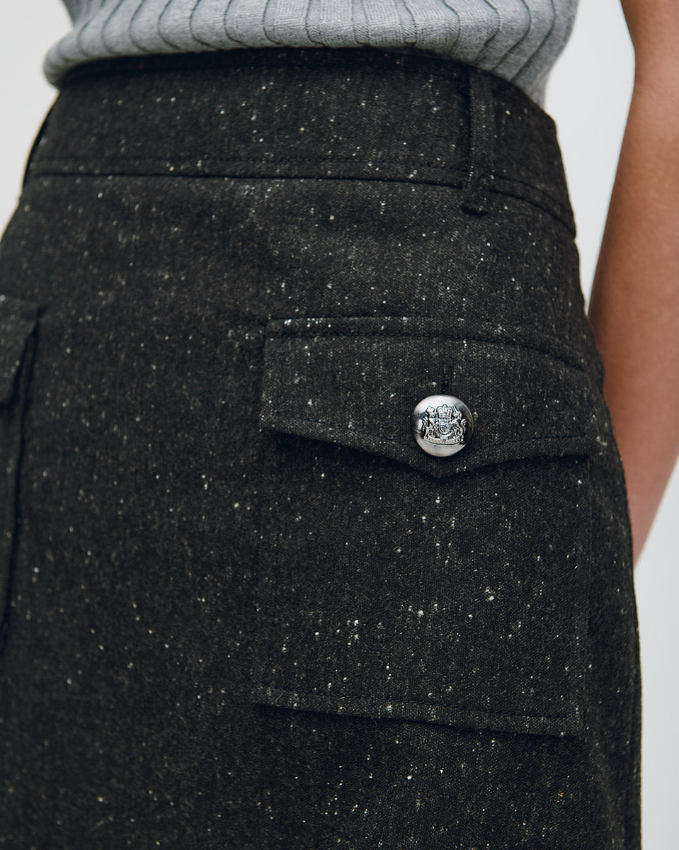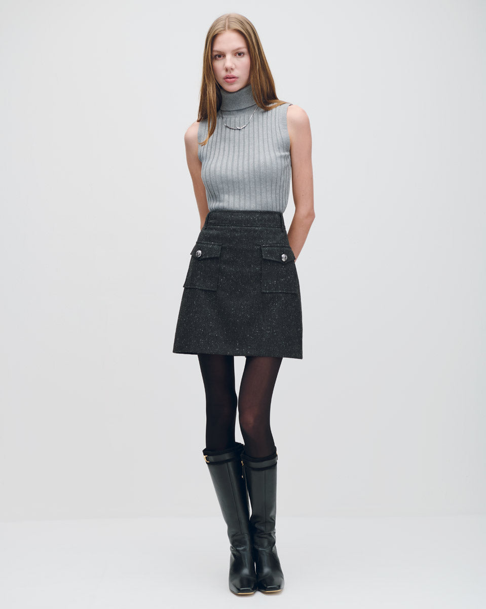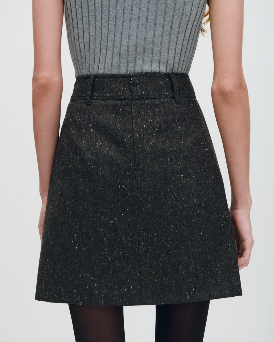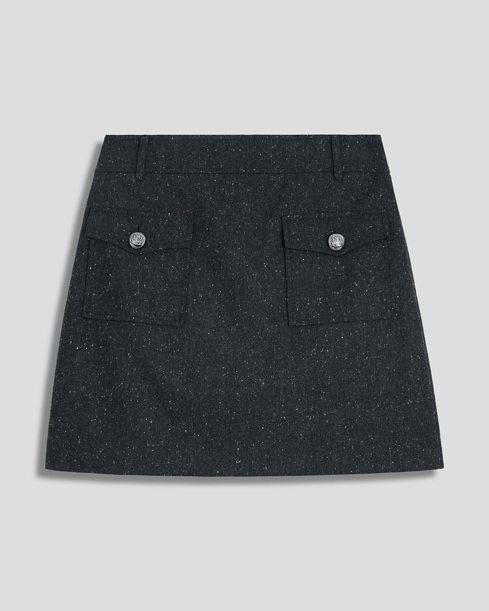 Mini Falda De Lana Gris Oxford Jaspeado