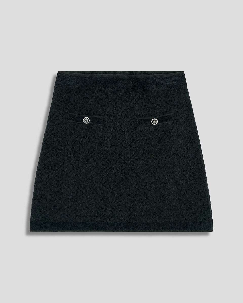 Mini Falda Negra De Punto Jacquard Tipo Mosaico