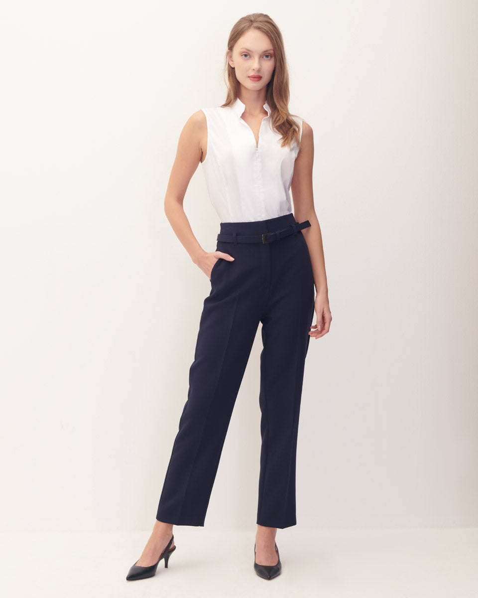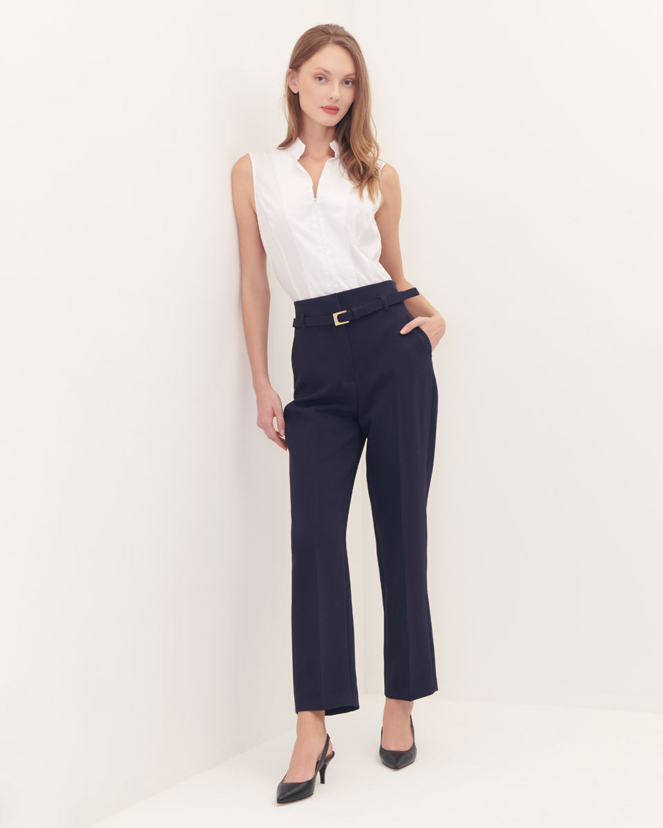 Una opción clásica y sofisticada que puede ser combinada con una blusa de seda y sandalias de tacón para un look elegante, o con una camiseta blanca y zapatillas para un estilo más casual.El cinturón aporta un toque de estilo y define la cintura.