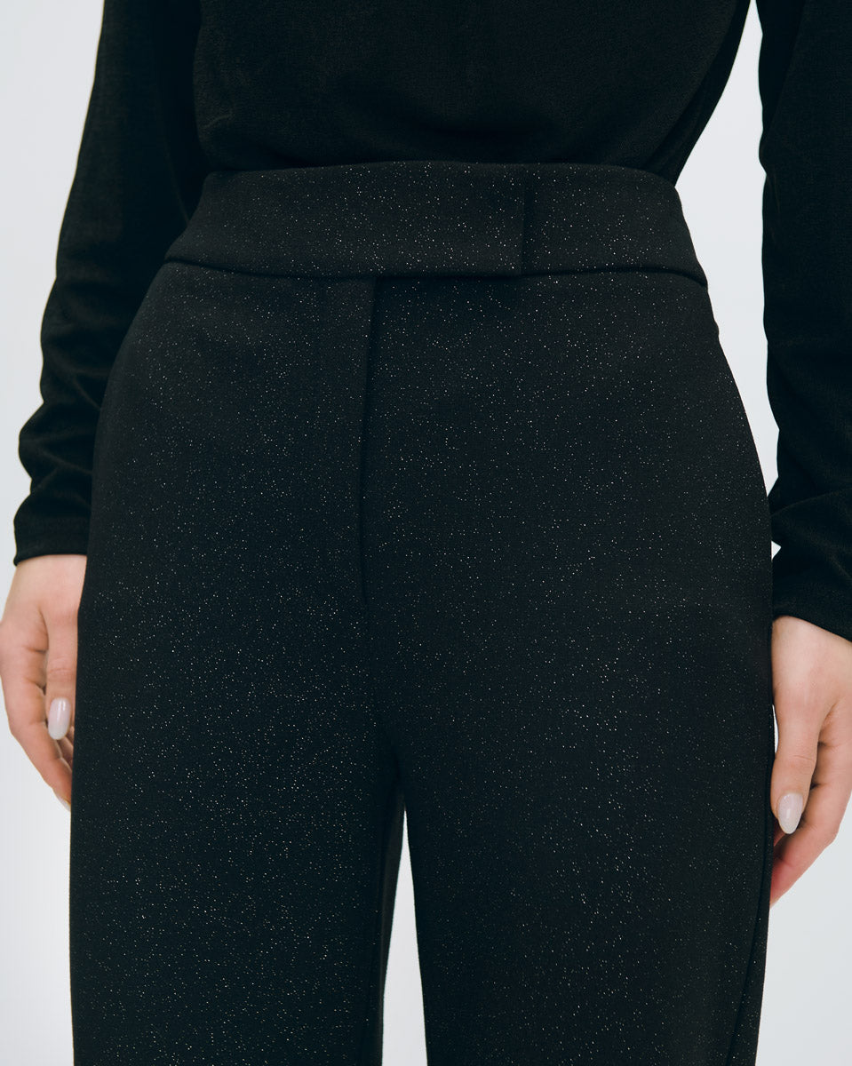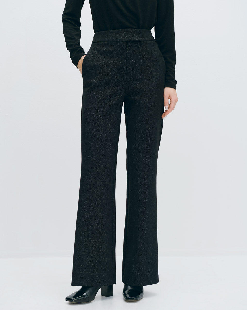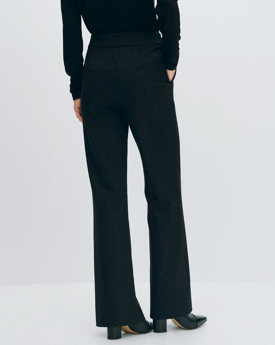Pantalón Negro De Punto Con Brillo Tiro Alto Acampanado