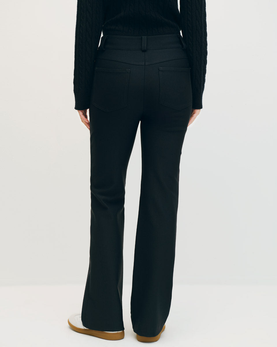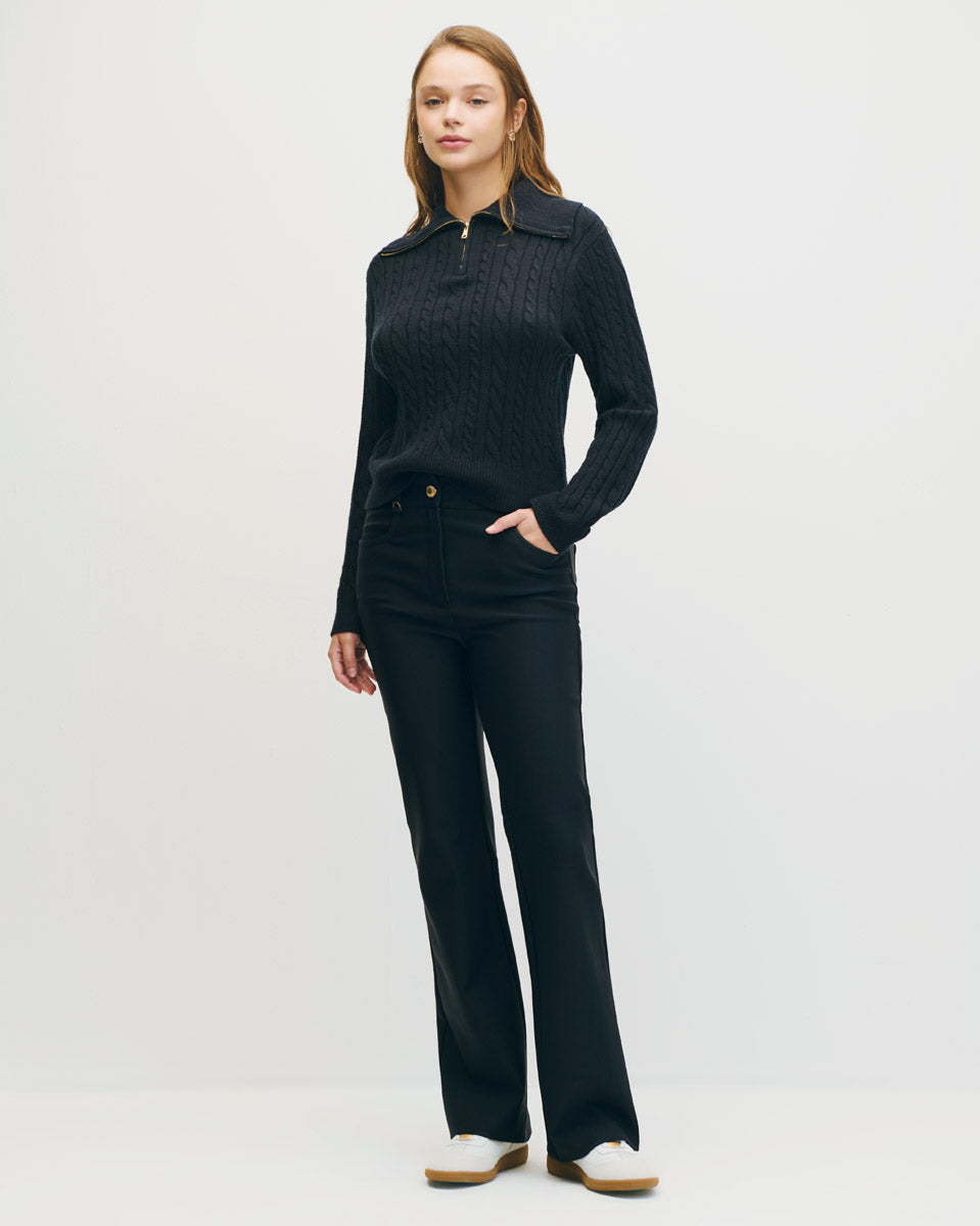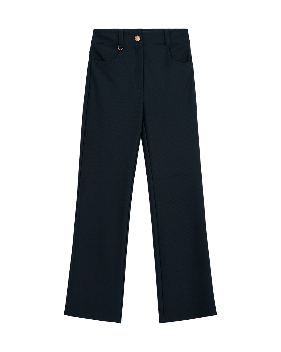 Pantalón Recto Acampanado Tiro Alto Marino De Punto