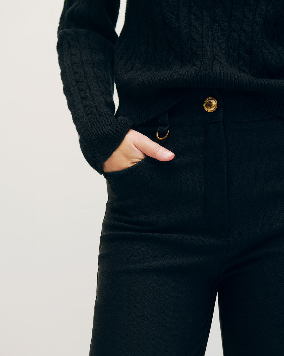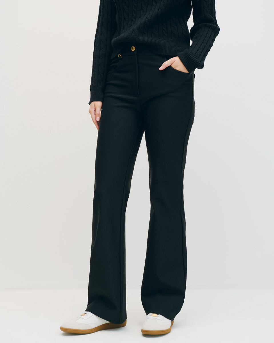 Este pantalón de punto marino con pierna acampanada ofrece comodidad con diseño estilizado. El tejido suave se adapta sin marcar, ideal para días activos con estilo. Llévalo con tops ajustados o blusas estructuradas.