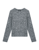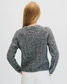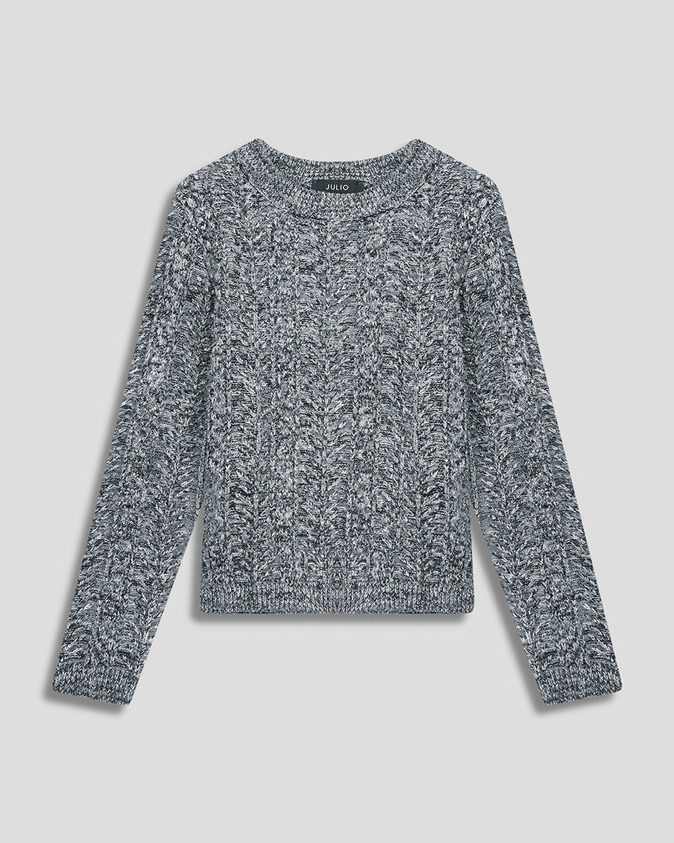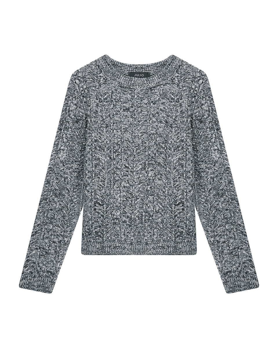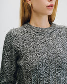 Suéter Corto Tejido Trenzado Gris Jaspeado Cuello Redondo
