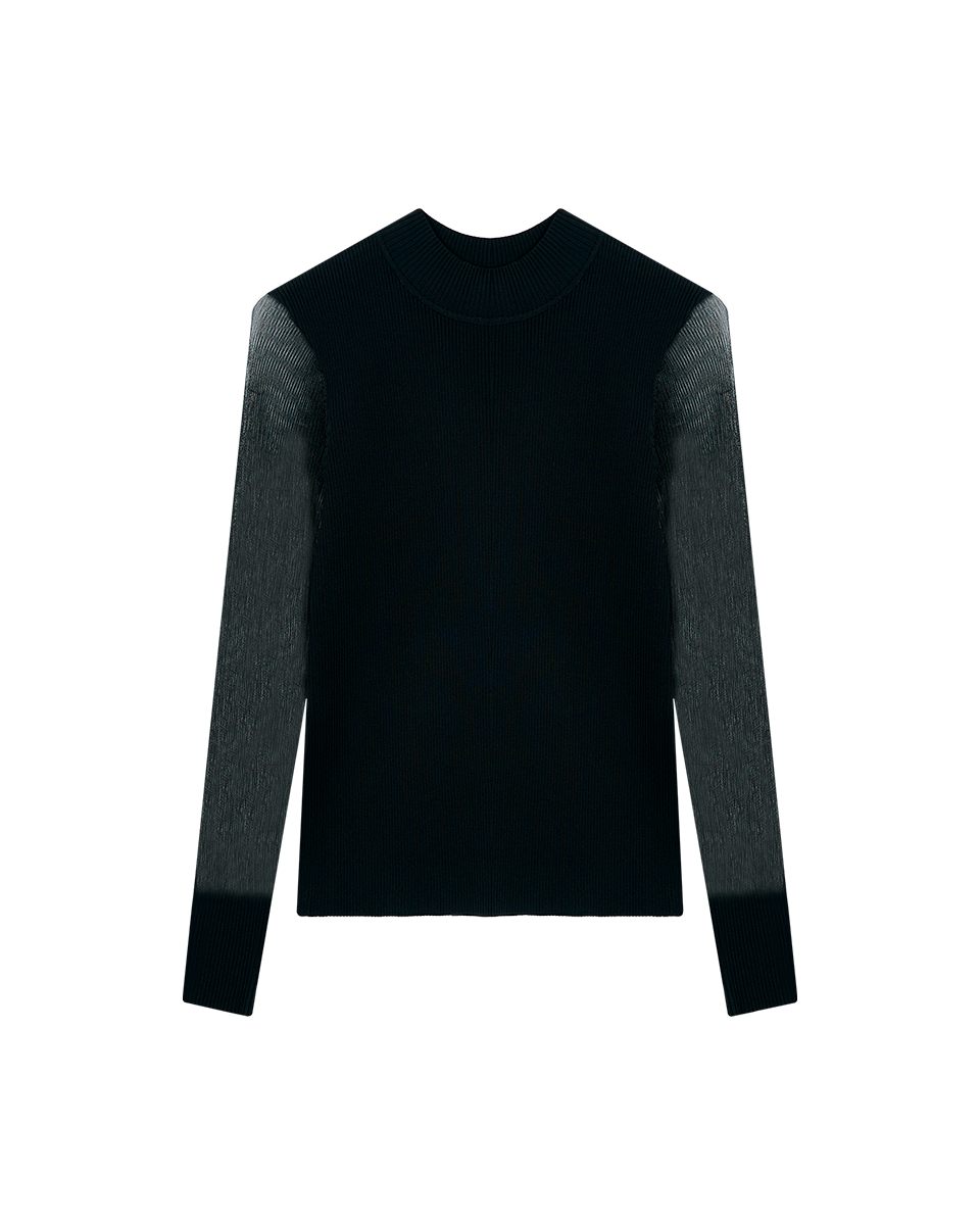 Suéter Negro Tejido Canalé Mangas Con Transparencia