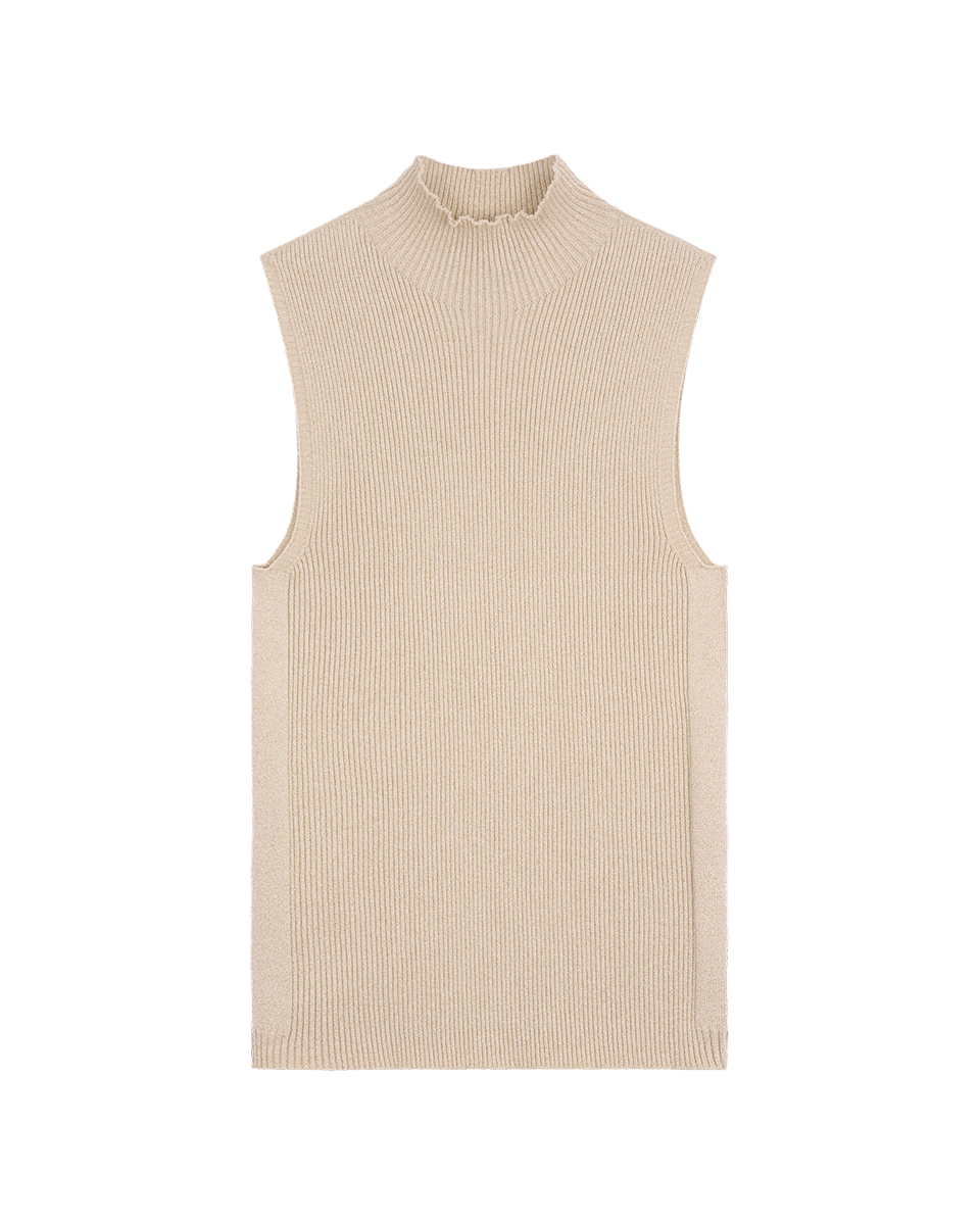 Top Tejido Canalé Beige Con Lúrex Oro Cuello Perkins