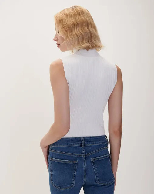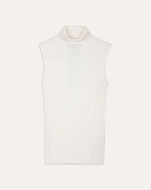 Top Tejido Sin Mangas Cuello De Tortuga Blanco