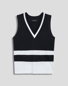 Blusa Tejido De Punto Negro Escote V Franjas En Contraste