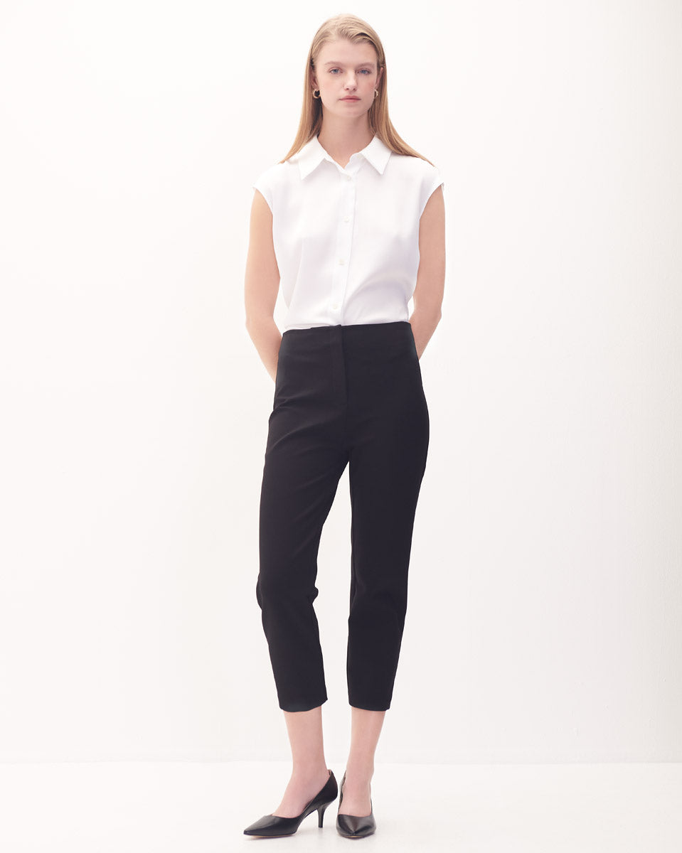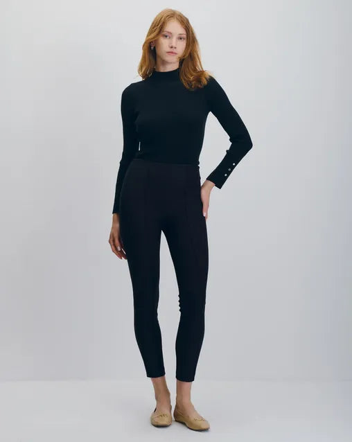 Pantalón Recto Tiro Alto De Punto Negro