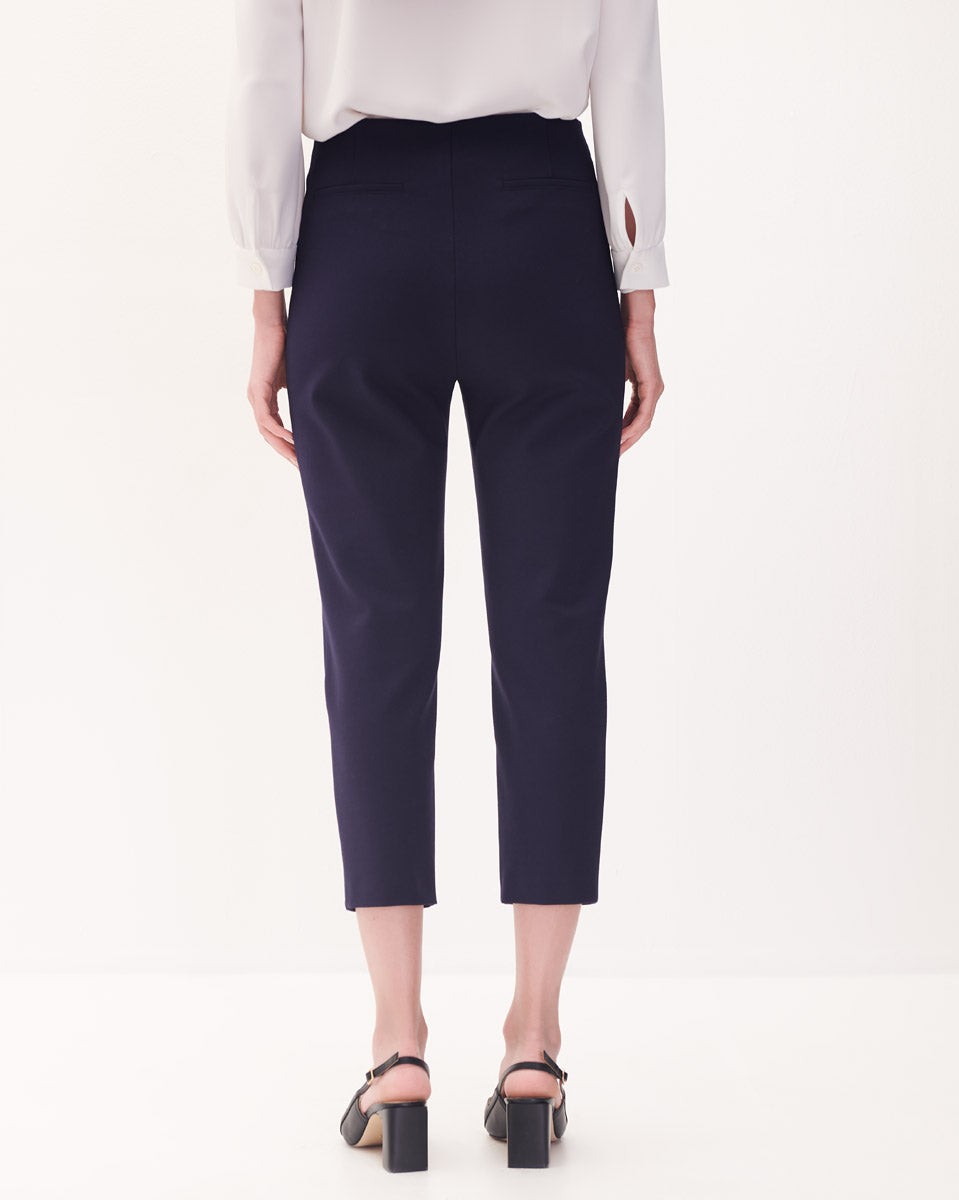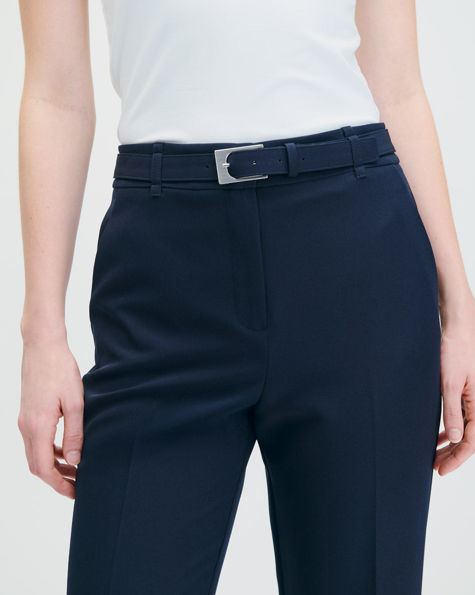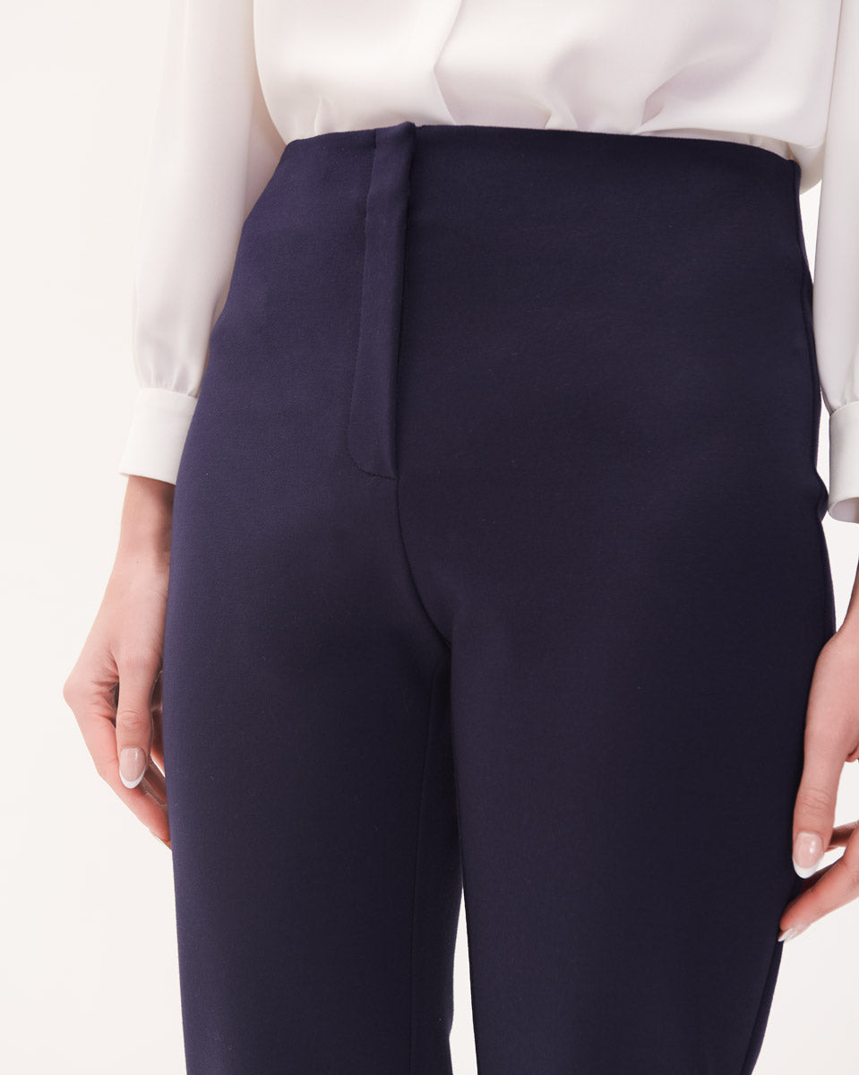 Pantalón Recto Tiro Alto De Punto Azul Marino