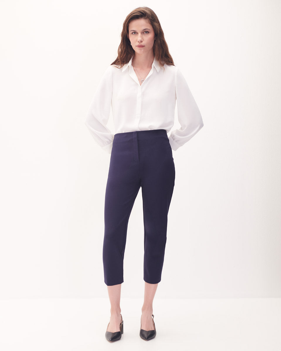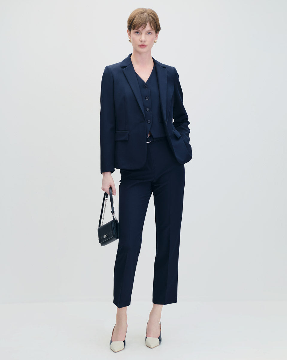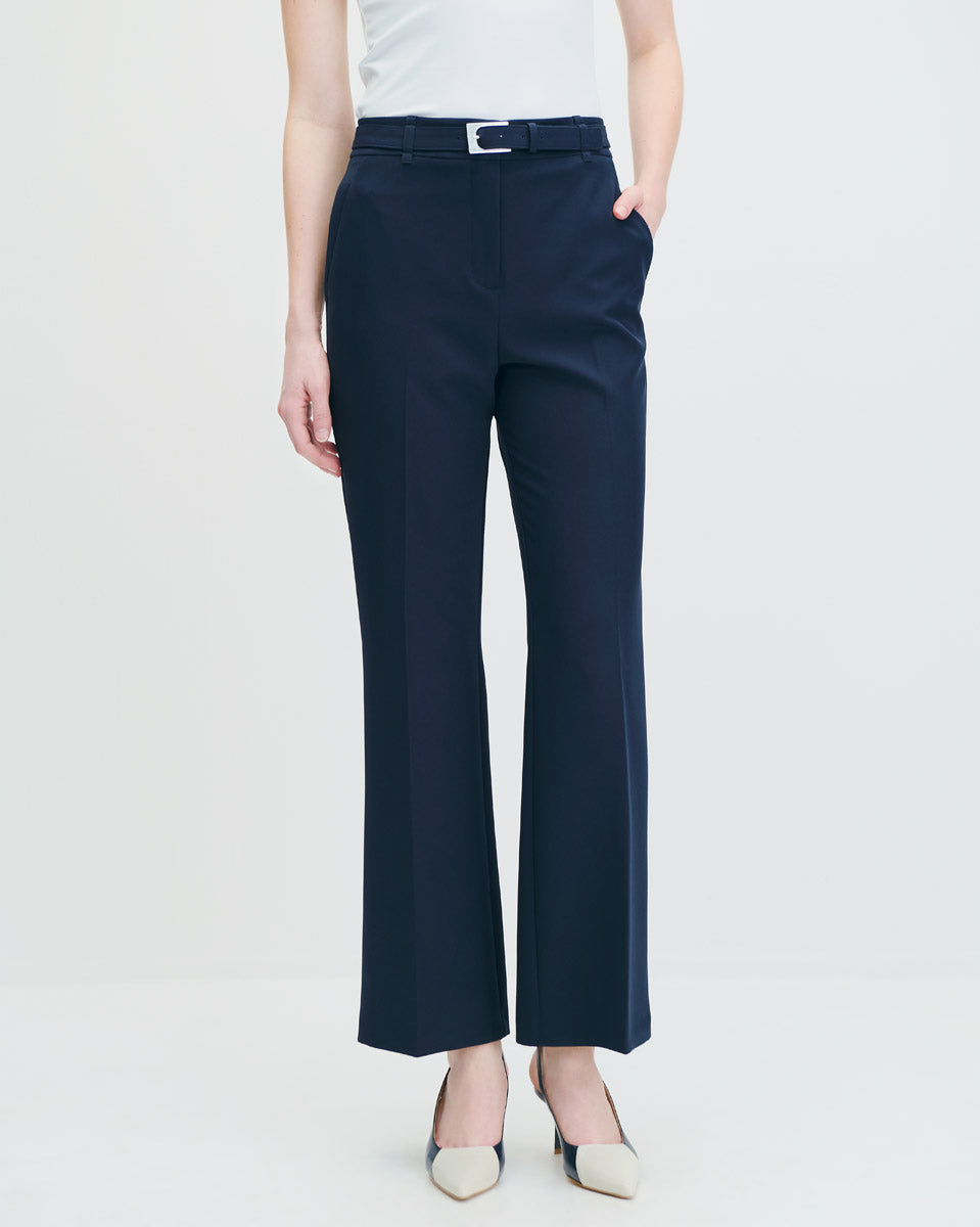 Pantalón Recto Tiro Alto De Punto Azul Marino