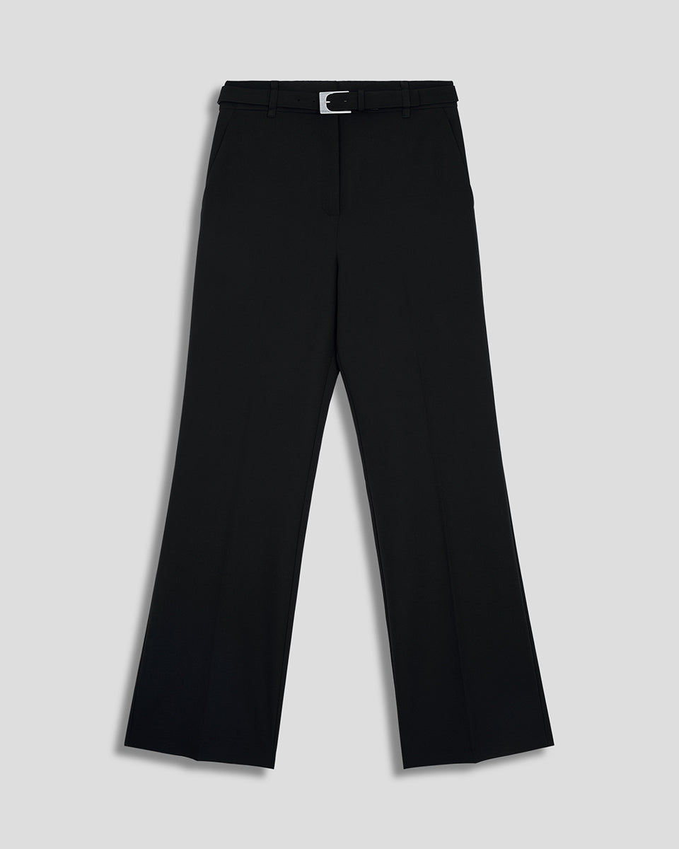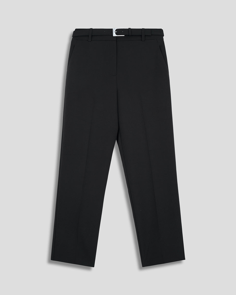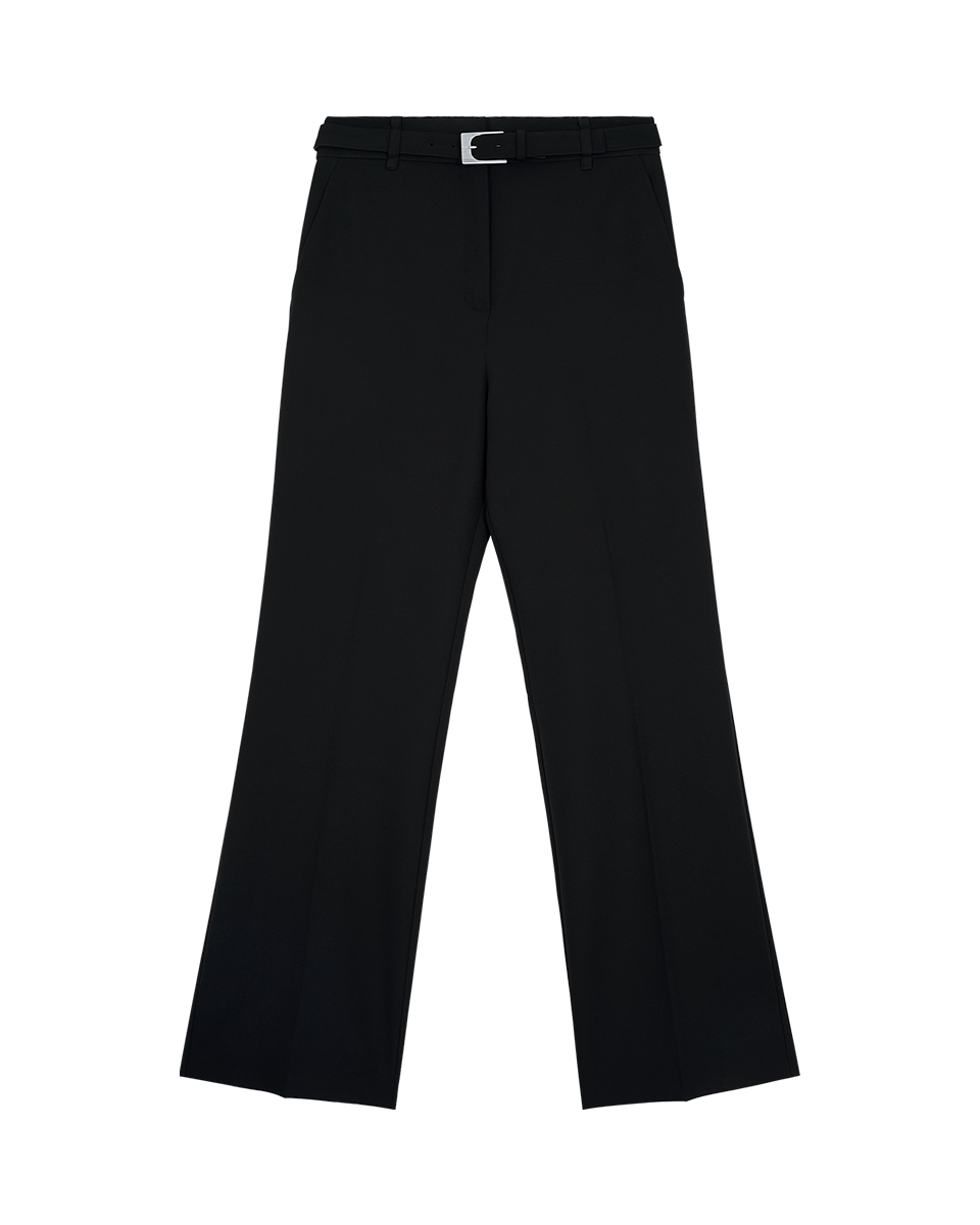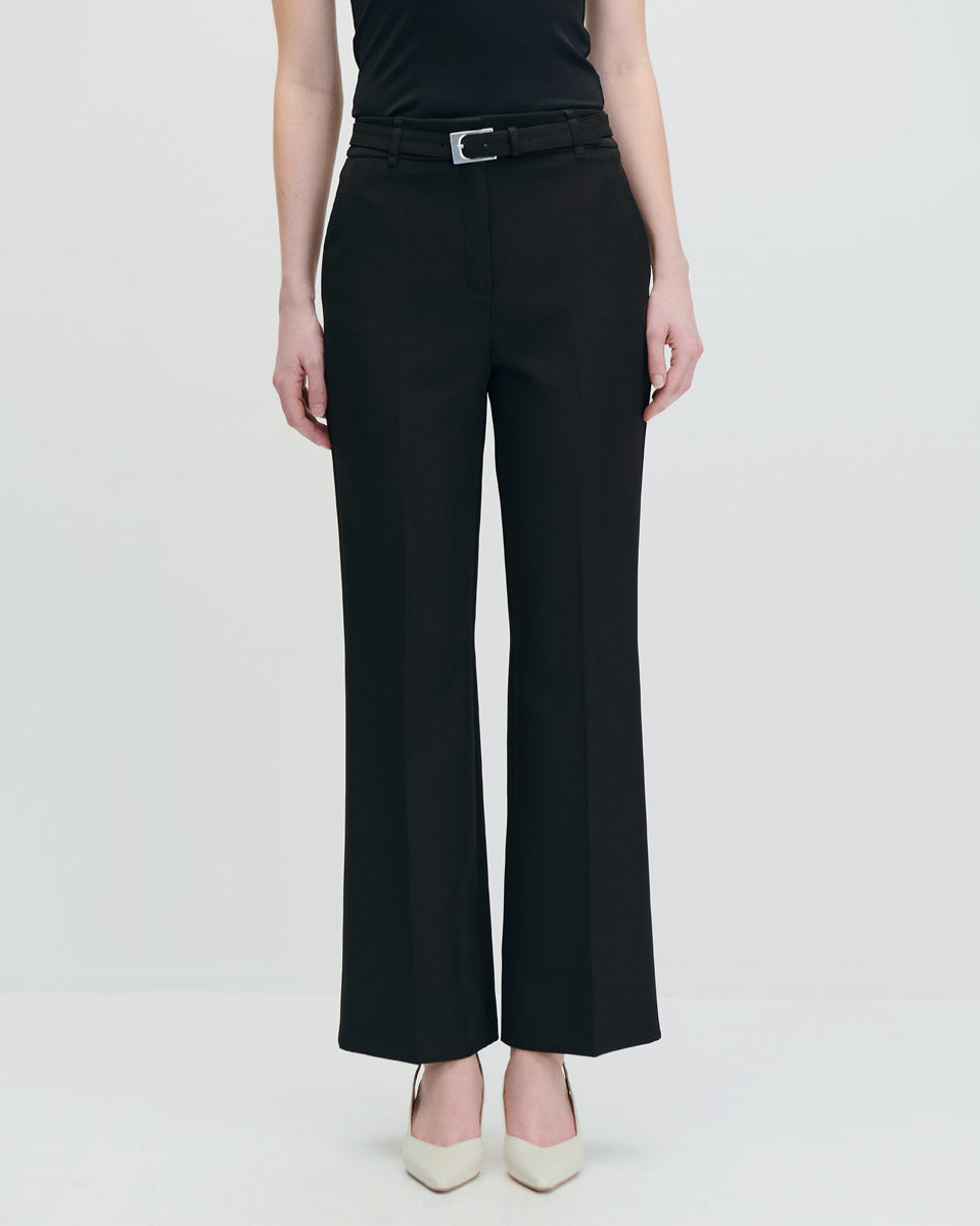 Pantalón Recto Fluido Tiro Alto Negro Con Cinturón