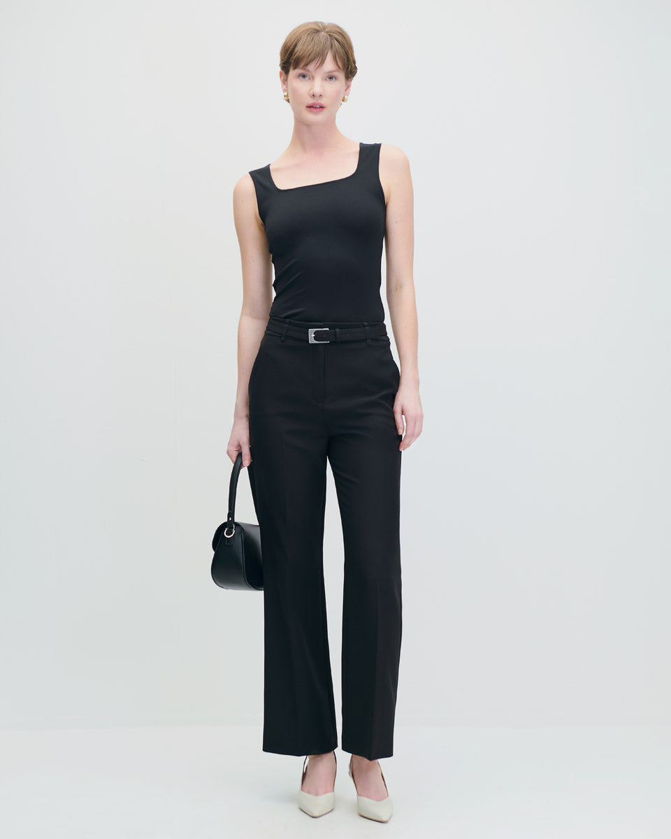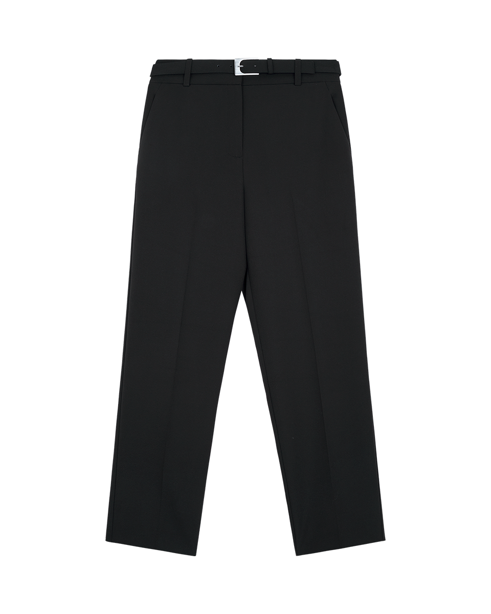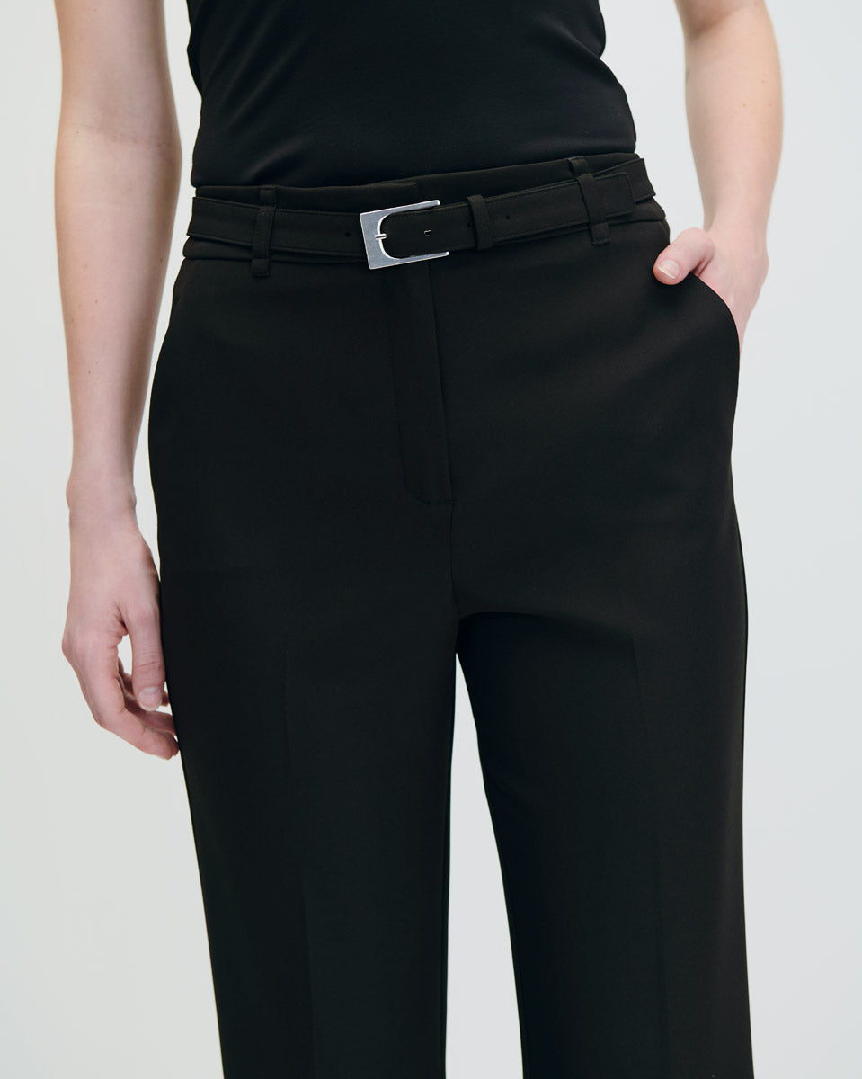 Pantalón Recto Fluido Tiro Alto Negro Con Cinturón