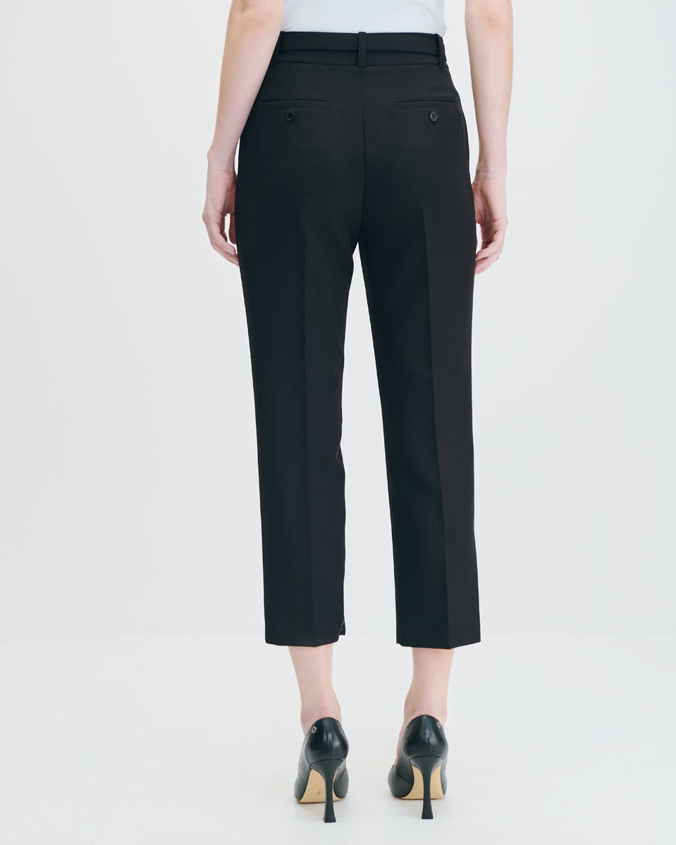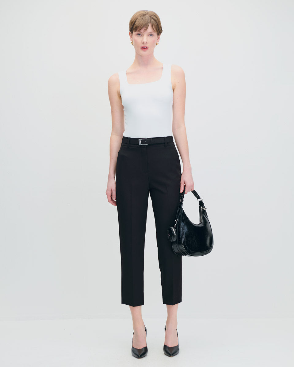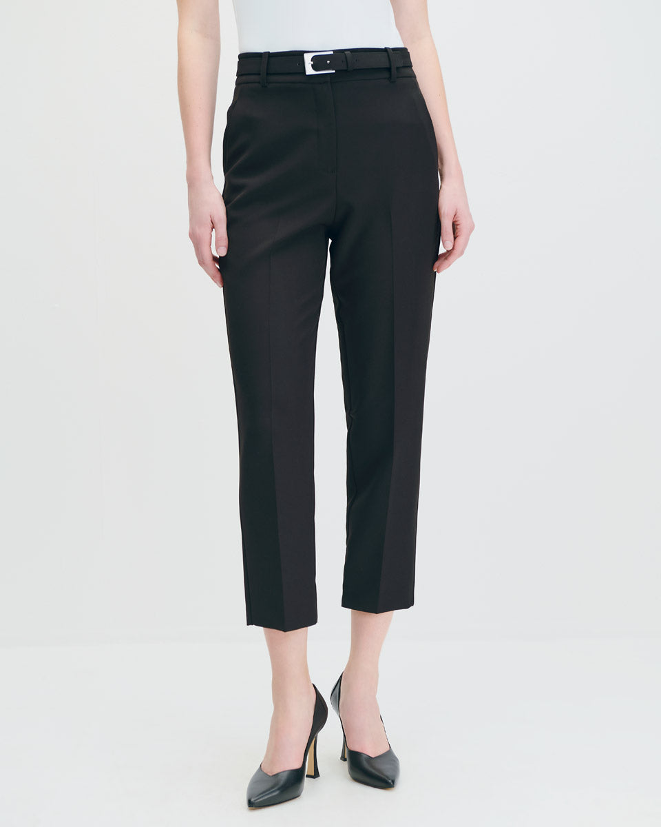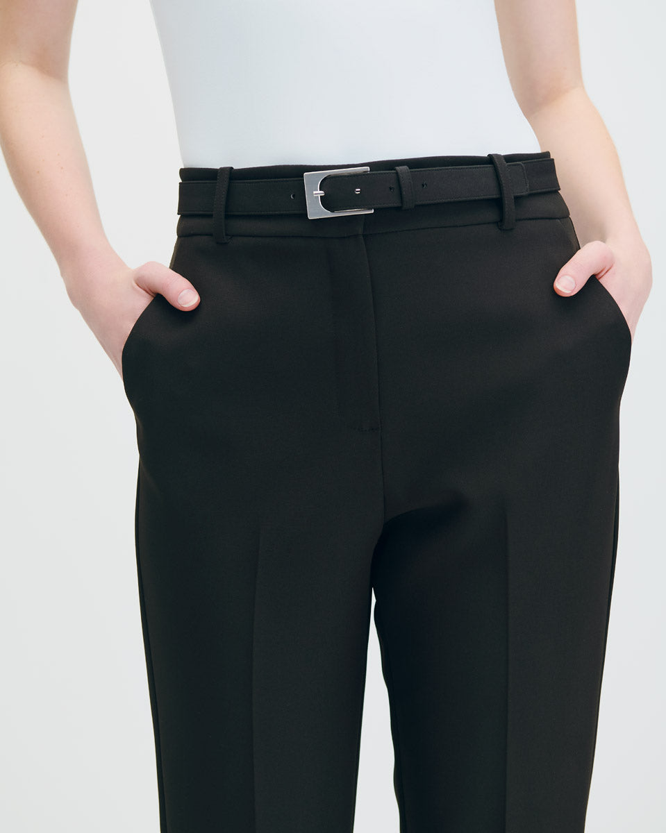 Pantalón Recto Fluido Tiro Alto Negro Con Cinturón