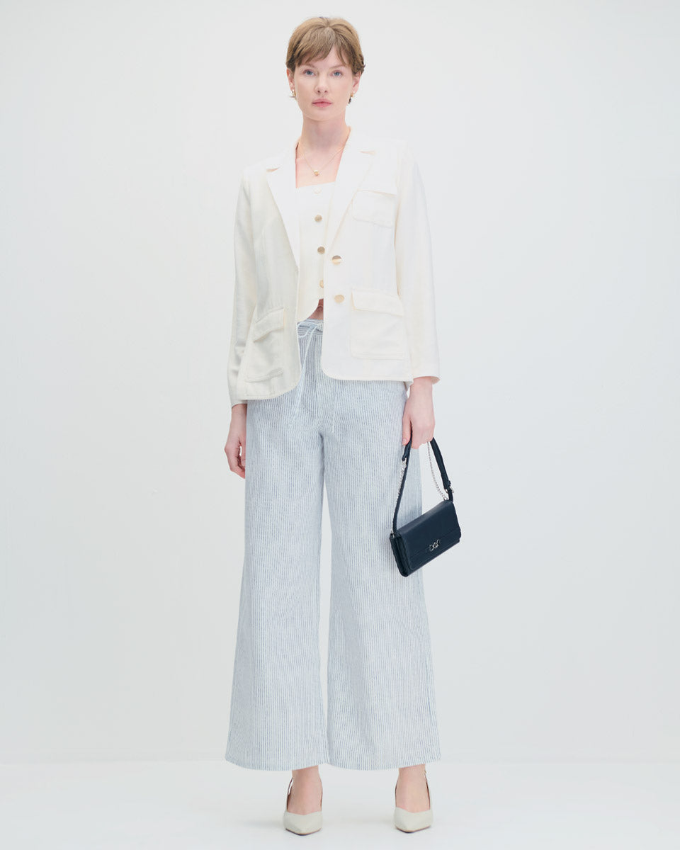 Pantalón Wide Leg Tiro Alto Tipo Jeans A Rayas Con Amarre