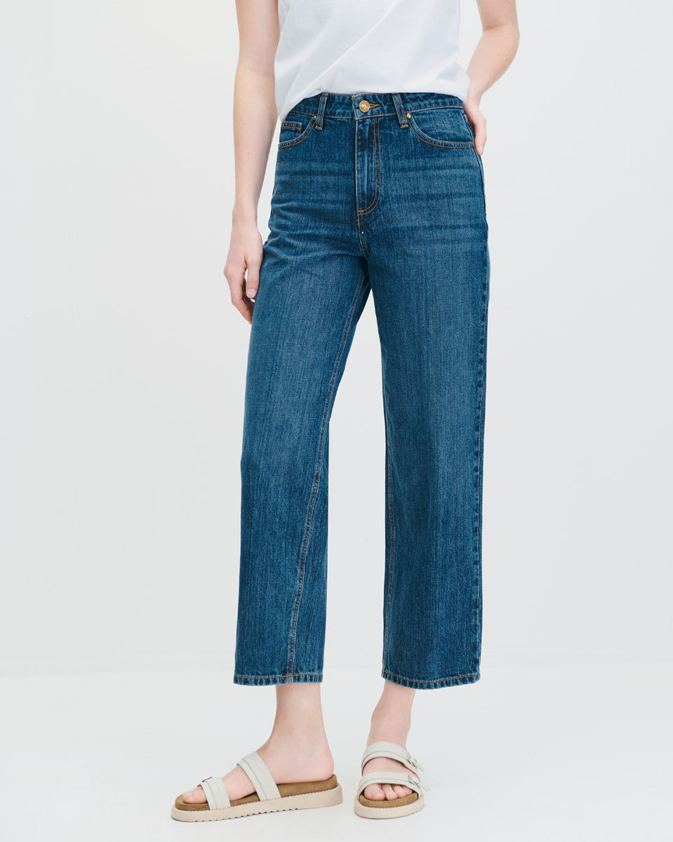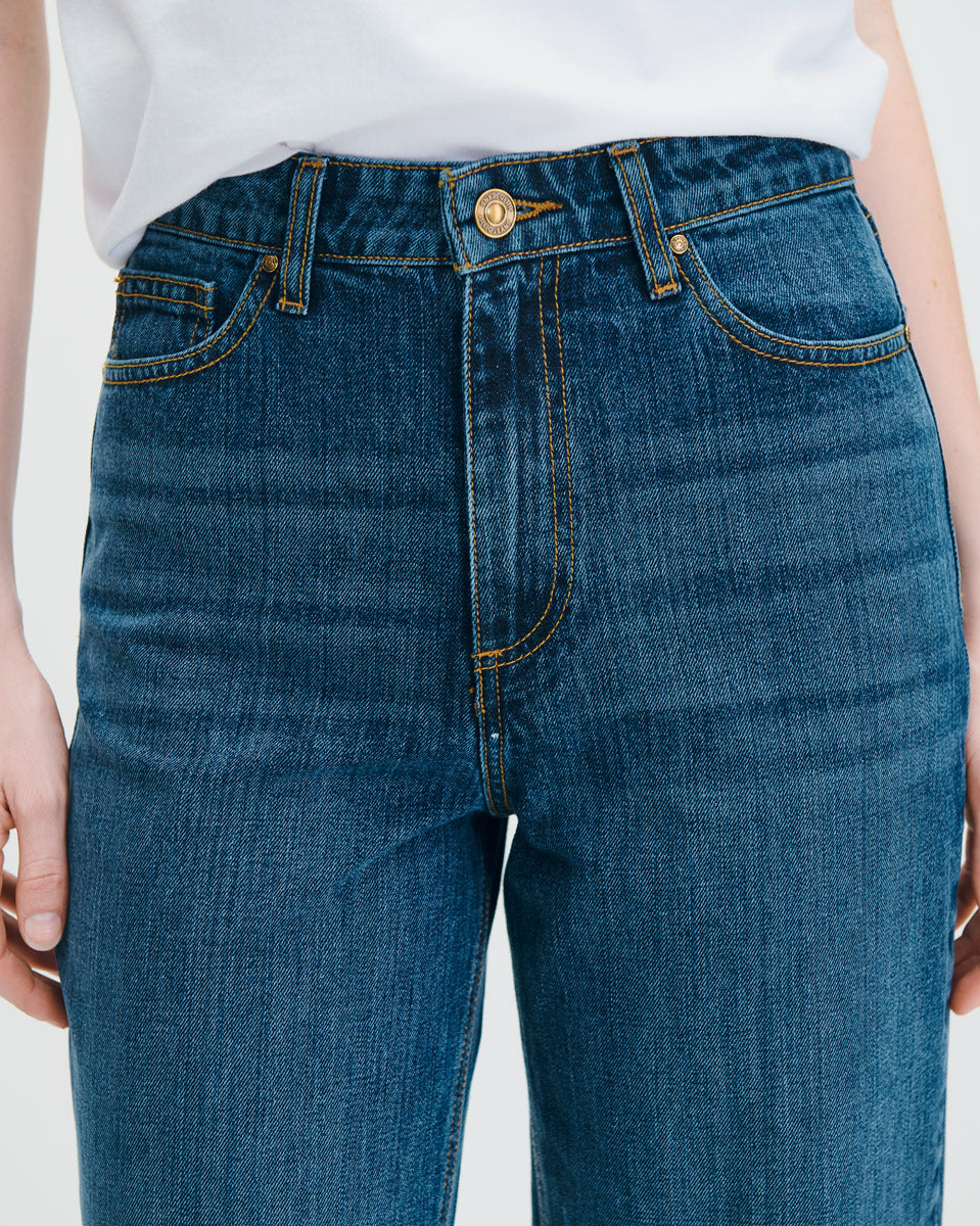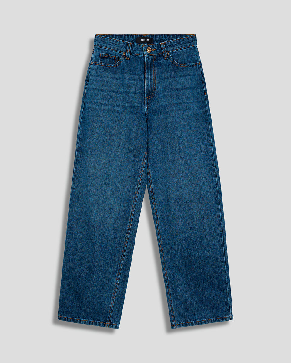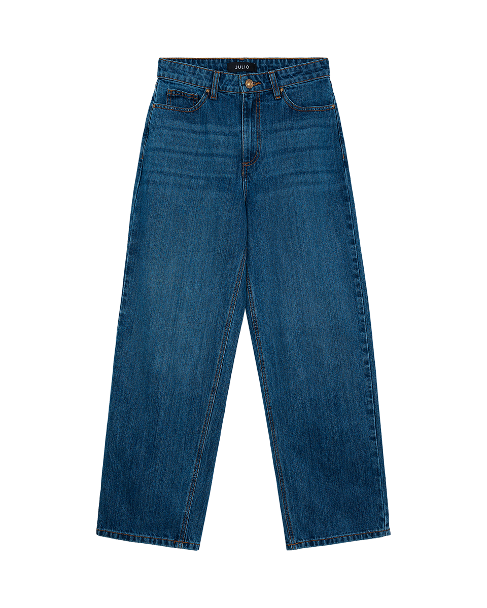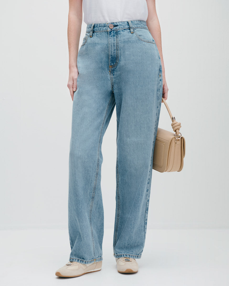 Jeans Baggy Tiro Alto Azul Medio
