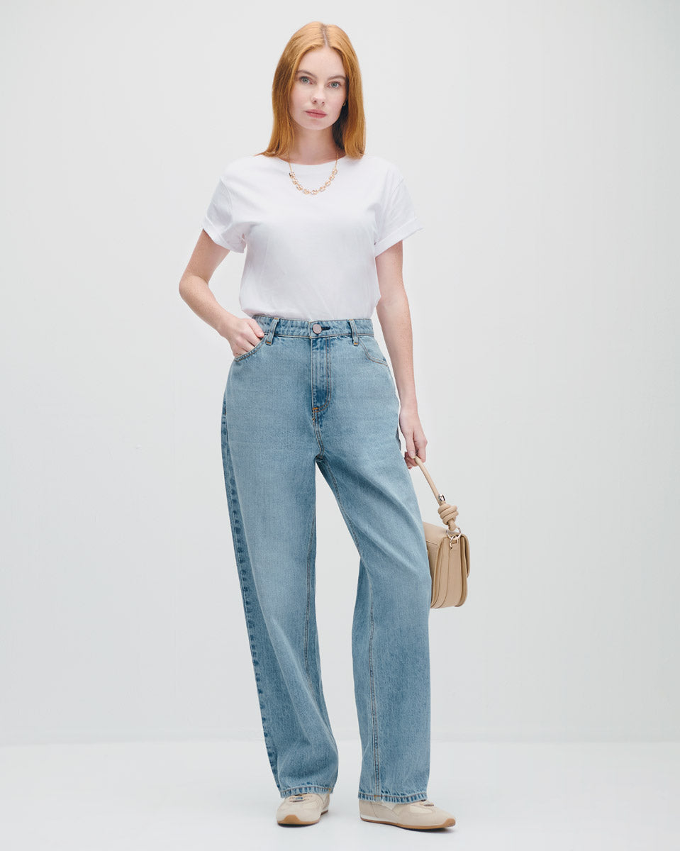 Jeans Baggy Tiro Alto Azul Claro Deslavado