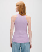 Blusa Halter Lavanda Tejido Canalé Con Lúrex