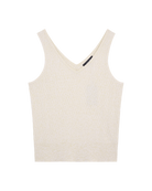 Una blusa con tejido de punto con lúrex en tono oro que aporta un brillo sutil y sofisticado al look. El escote V estiliza la parte superior del cuerpo, mientras que la textura del tejido añade profundidad visual. Una prenda que eleva combinaciones sencillas con un acento luminoso y elegante.