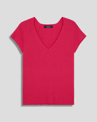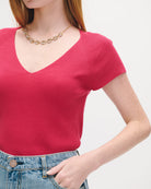 Blusa Tejido De Punto Escote V Magenta Manga Ranglan En Combinación