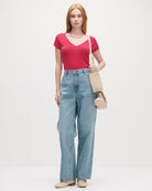 La blusa magenta destaca por su color vibrante, ideal para quienes buscan un toque audaz sin perder elegancia. El escote V estiliza la figura y la manga contrastada suma dinamismo. Perfecta con denim oscuro, pantalones blancos o faldas fluidas para un outfit con impacto.