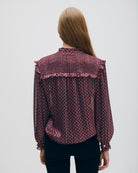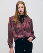 Blusa De Chifón Burdeos Estampado Corbatero Cuello Alto Con Smock