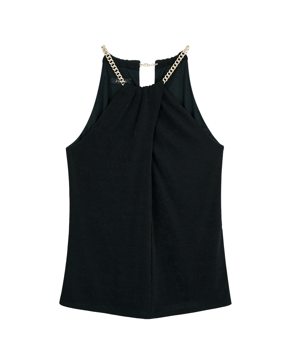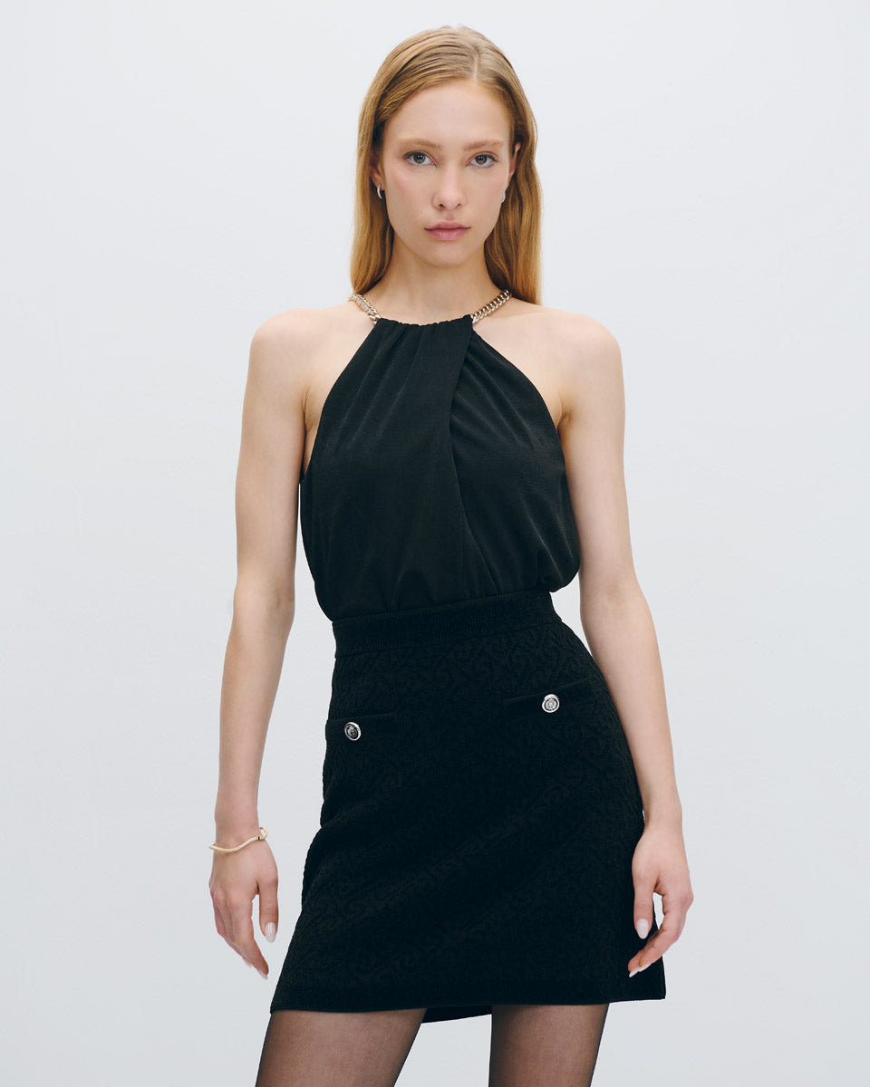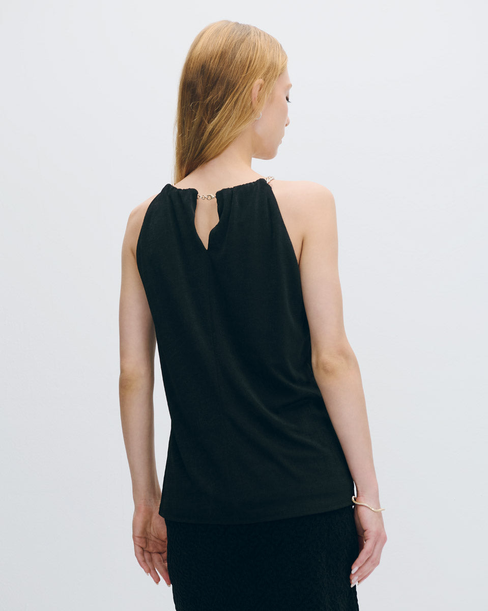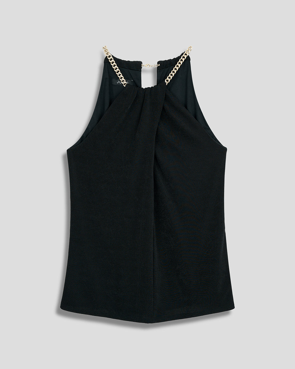 Blusa Negra De Punto Satinado Halter Con Cadena