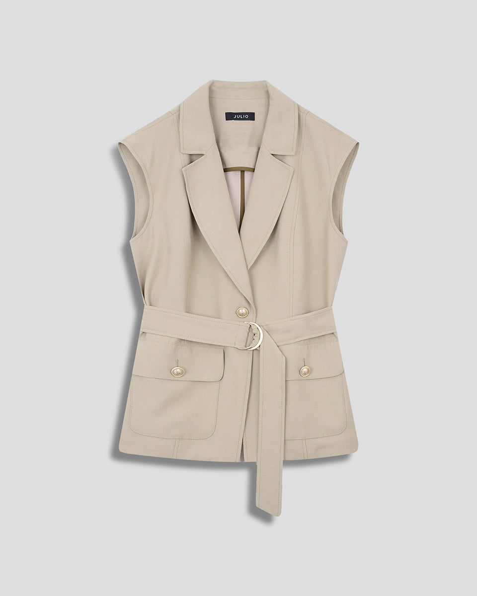 Chaleco Verde Musgo Largo Cruzado Con Banda