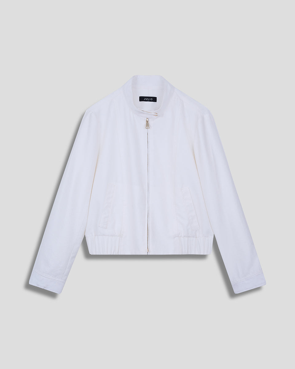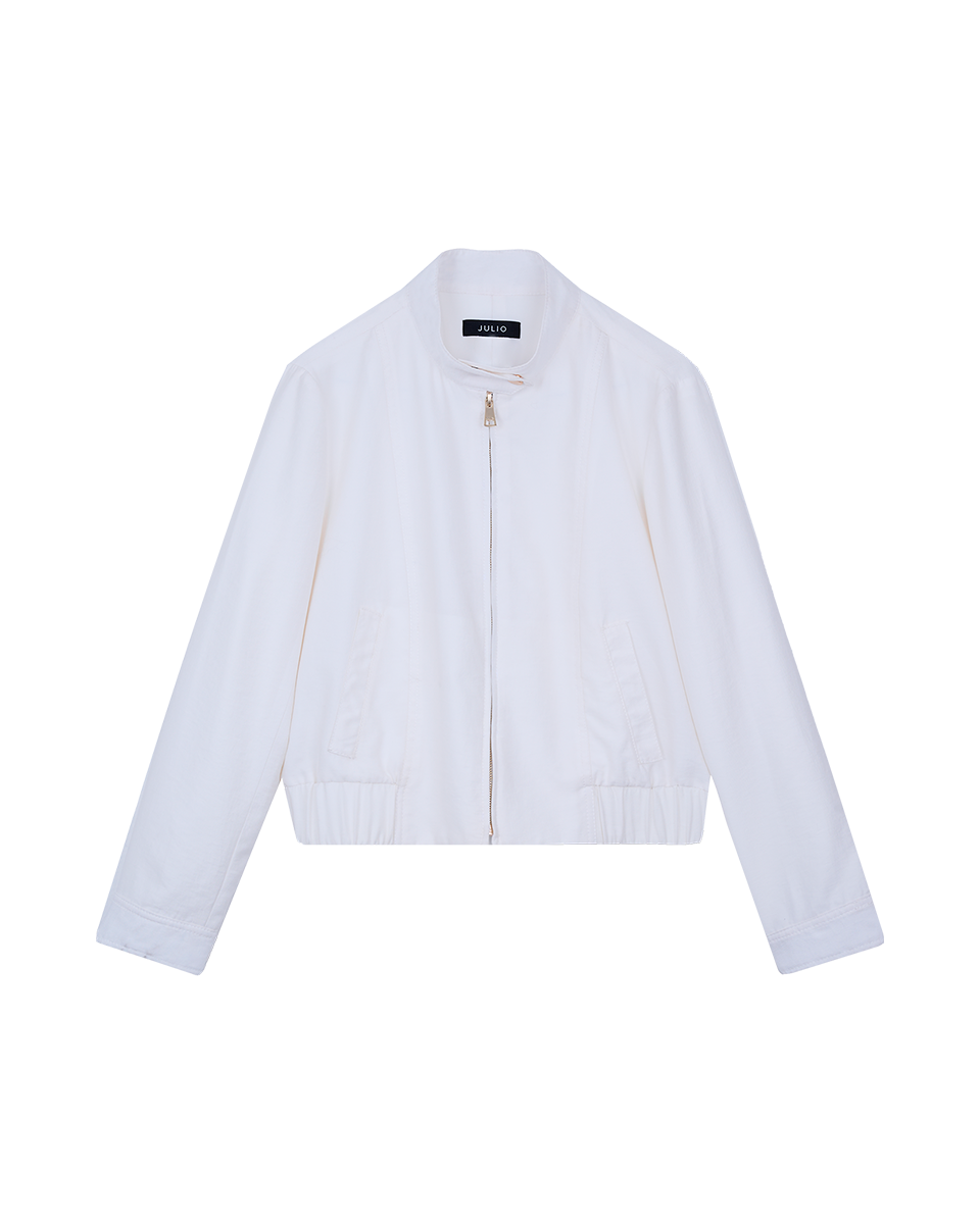 Chamarra Bomber Corta Blanca Cuello Alto