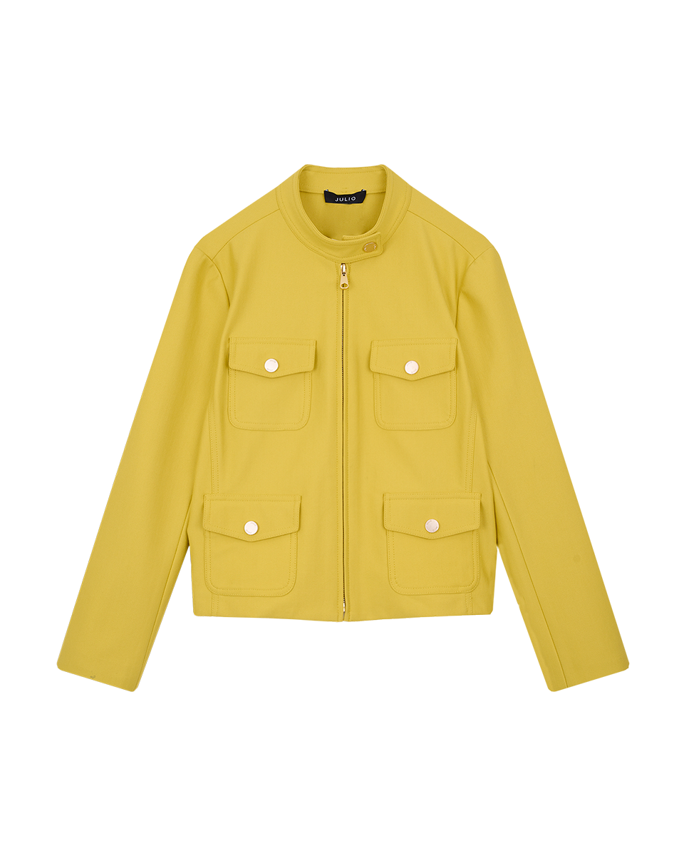 Chaqueta De Punto Estilo Safari Amarillo Aceite Cuello Alto