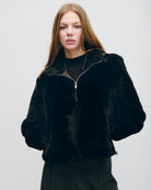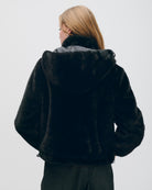 Chumpa Negra Pelo Sintético Con Capucha Desmontable