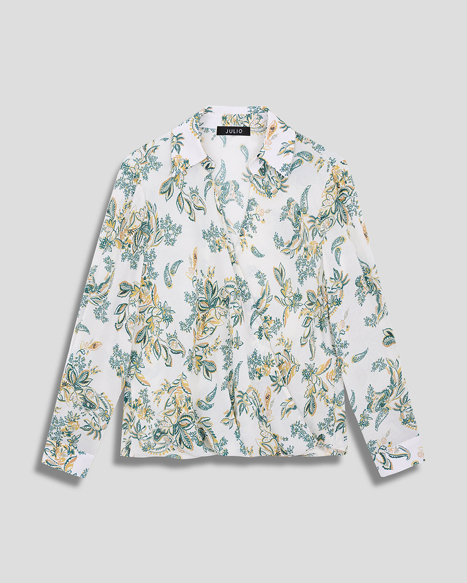 Blusa Envolvente Chifón Corrugado Estampado Ornamental