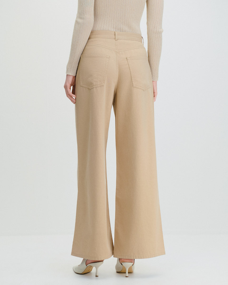 Pantalón Palazzo Tiro Alto Beige Tipo Jeans