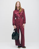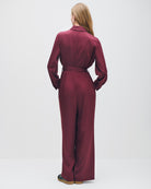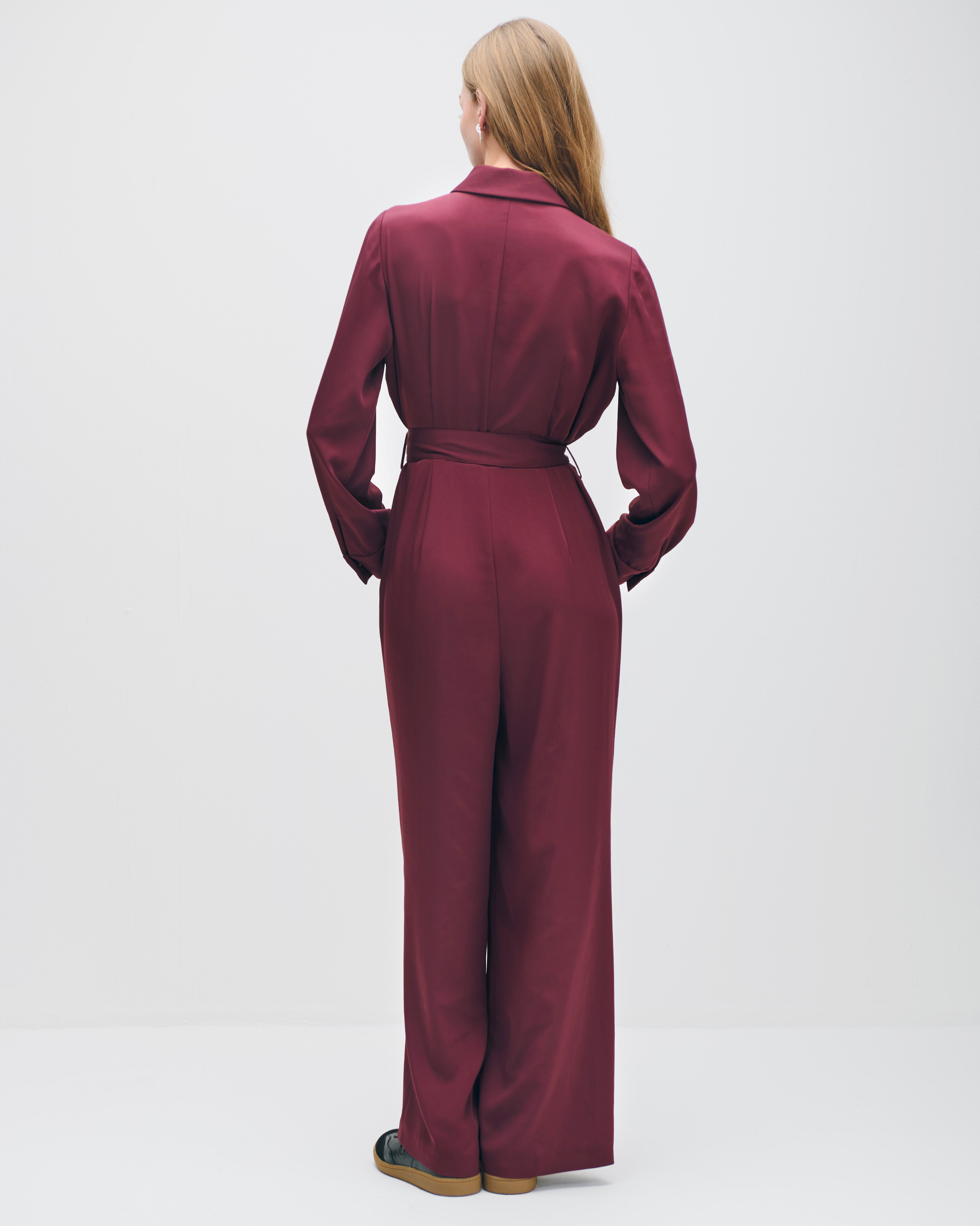 Jumpsuit De Satín Recto Fluido Burdeos Cuello Camisero