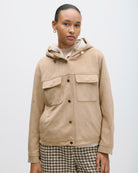 Chumpa De Gamuza Arena Con Capucha Y Jaretas