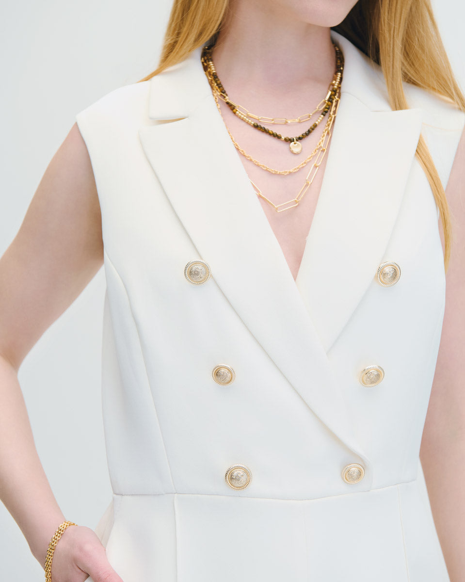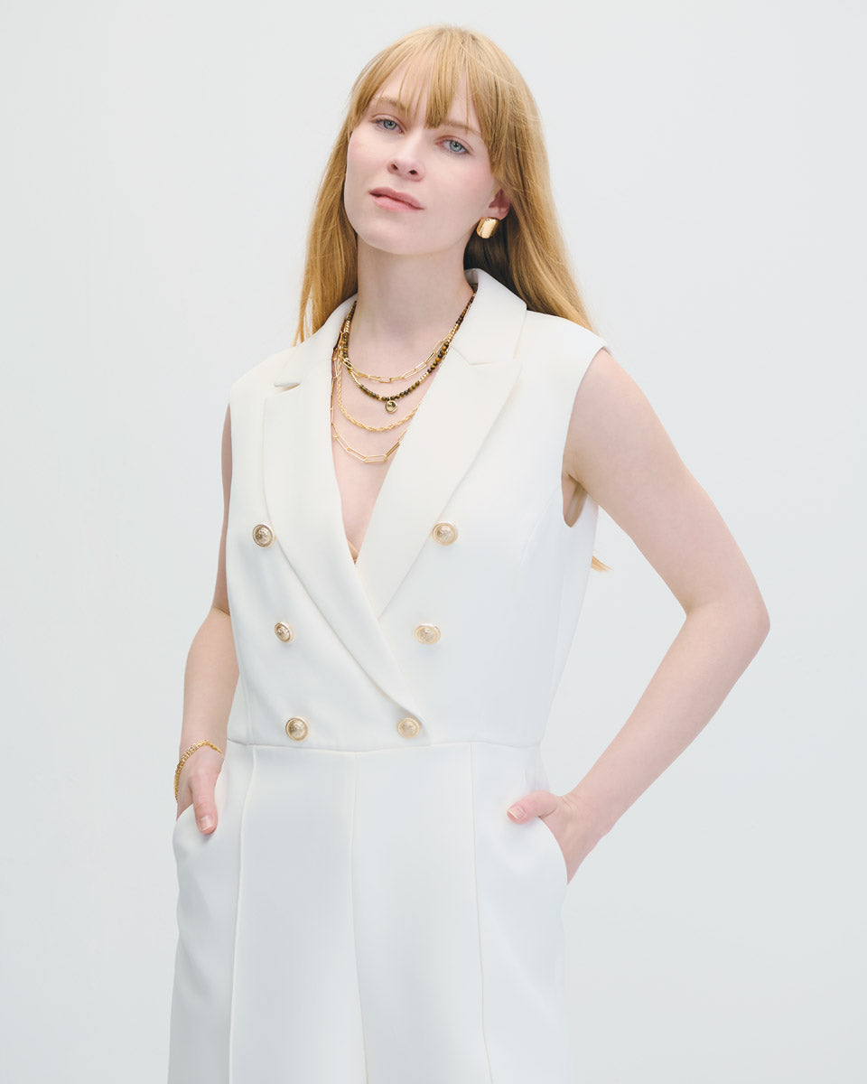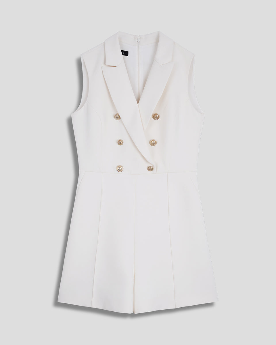 Rumper Blanco Corte Francés Doble Botonadura Y Solapa De Pico