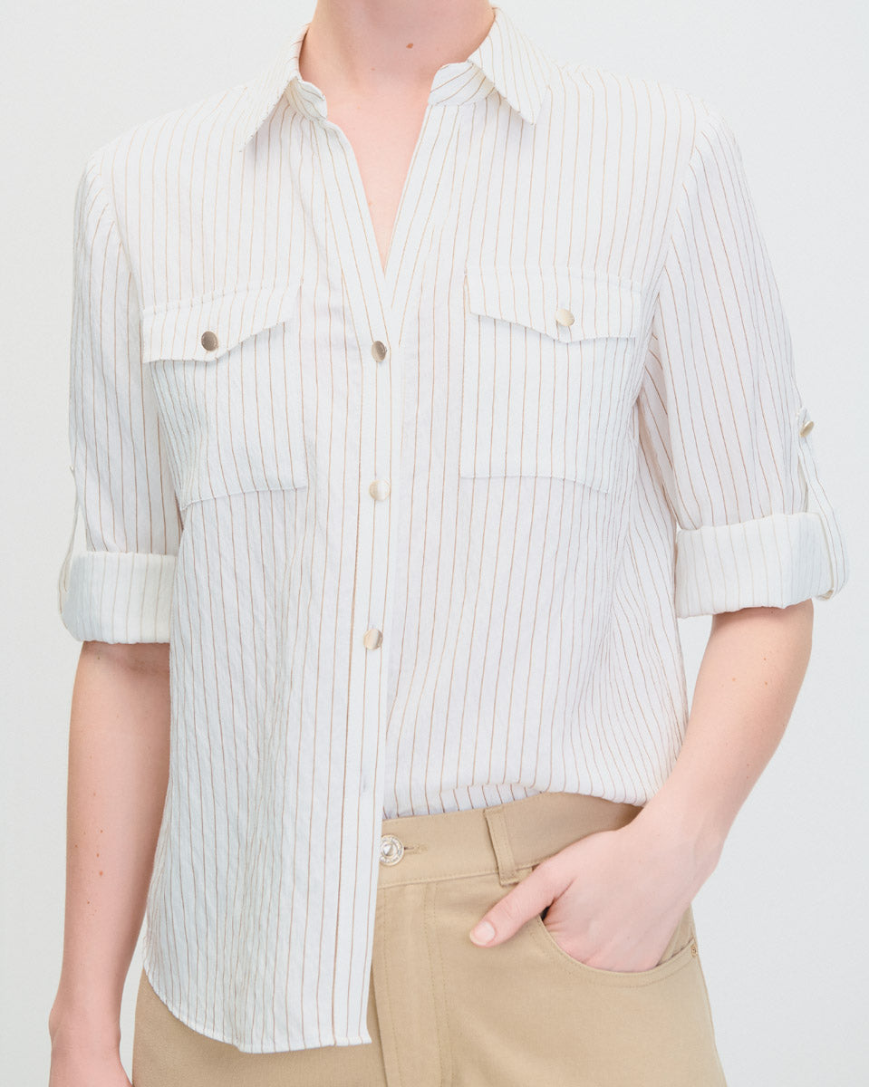 Blusa cuello camisero con bolsas
