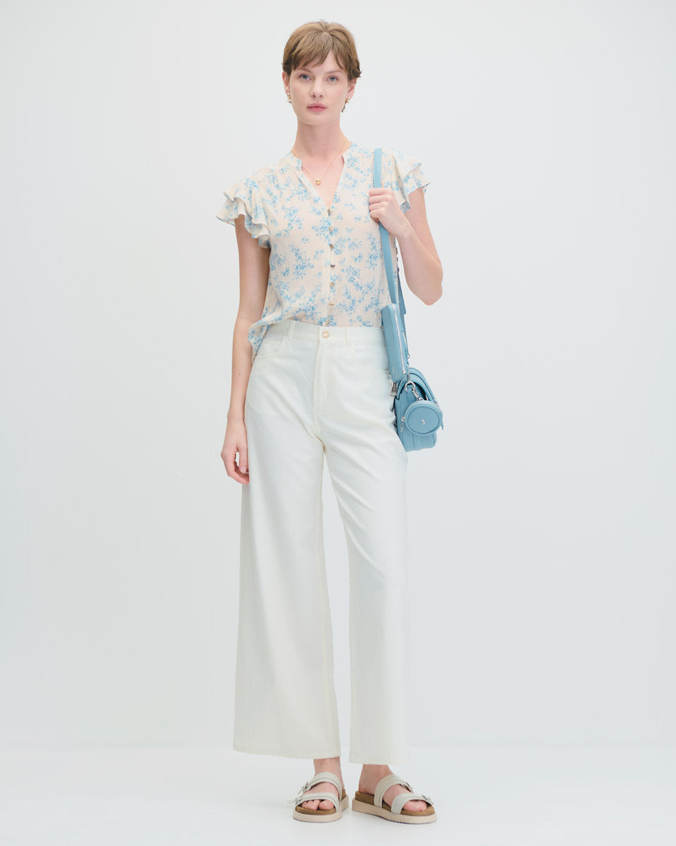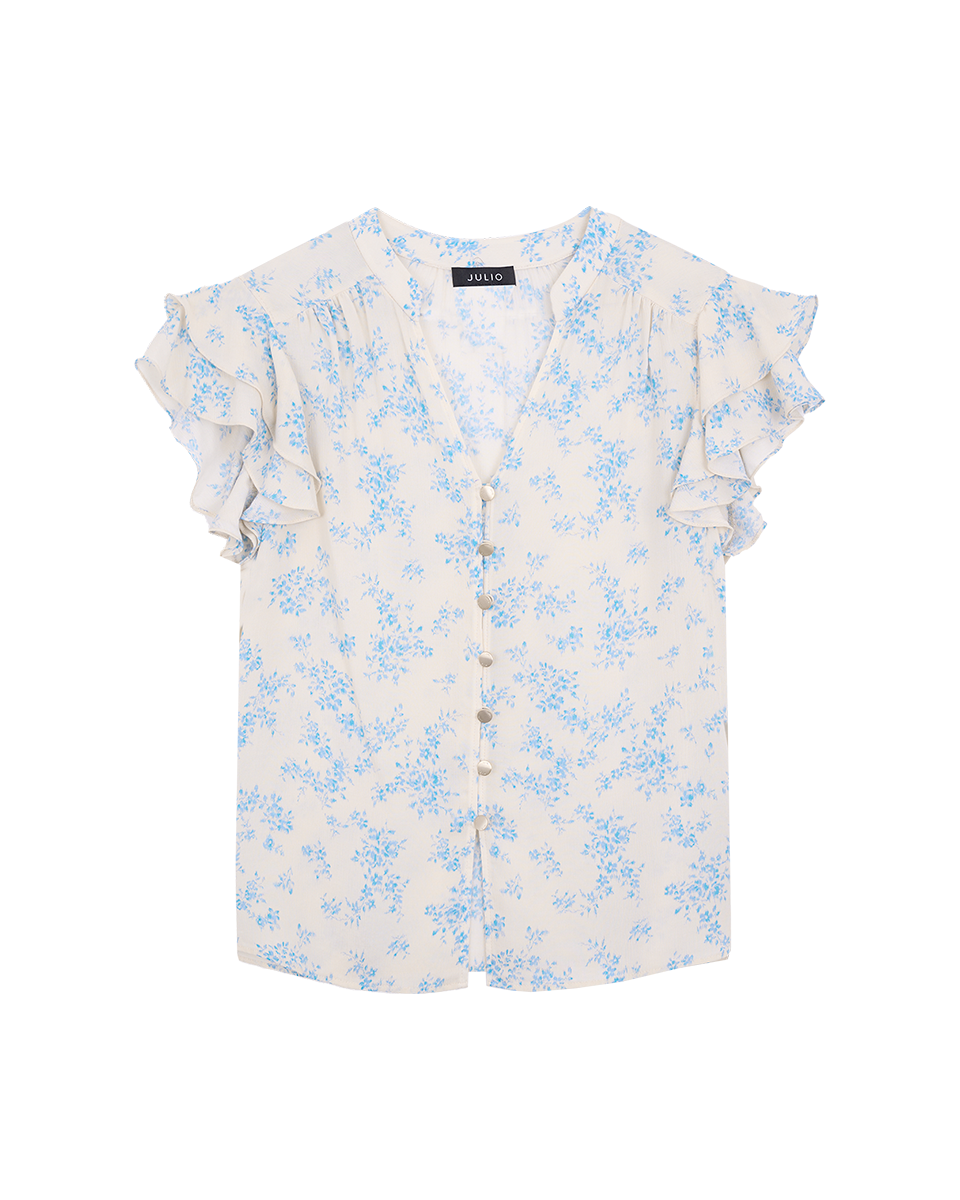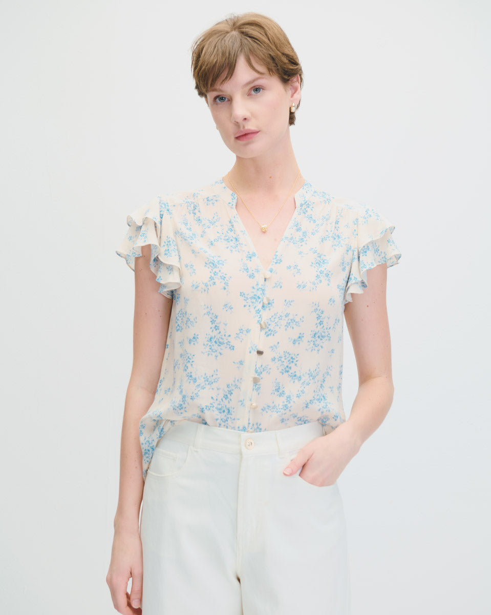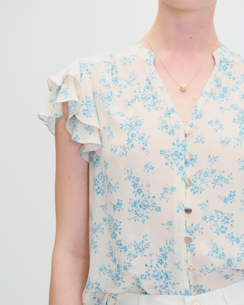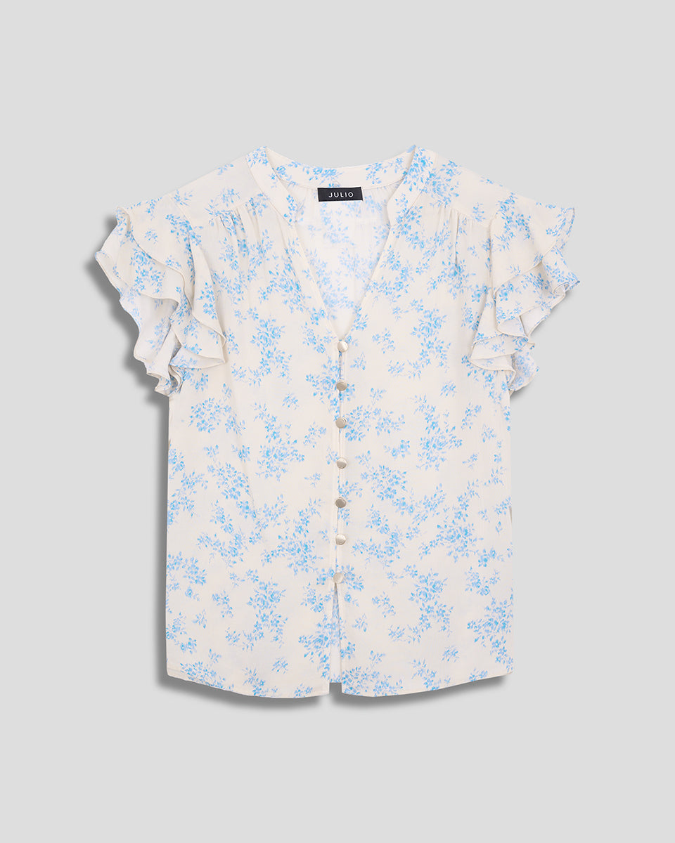 BLUSA ESCOTE V MANGA CON ESCAROLAS
