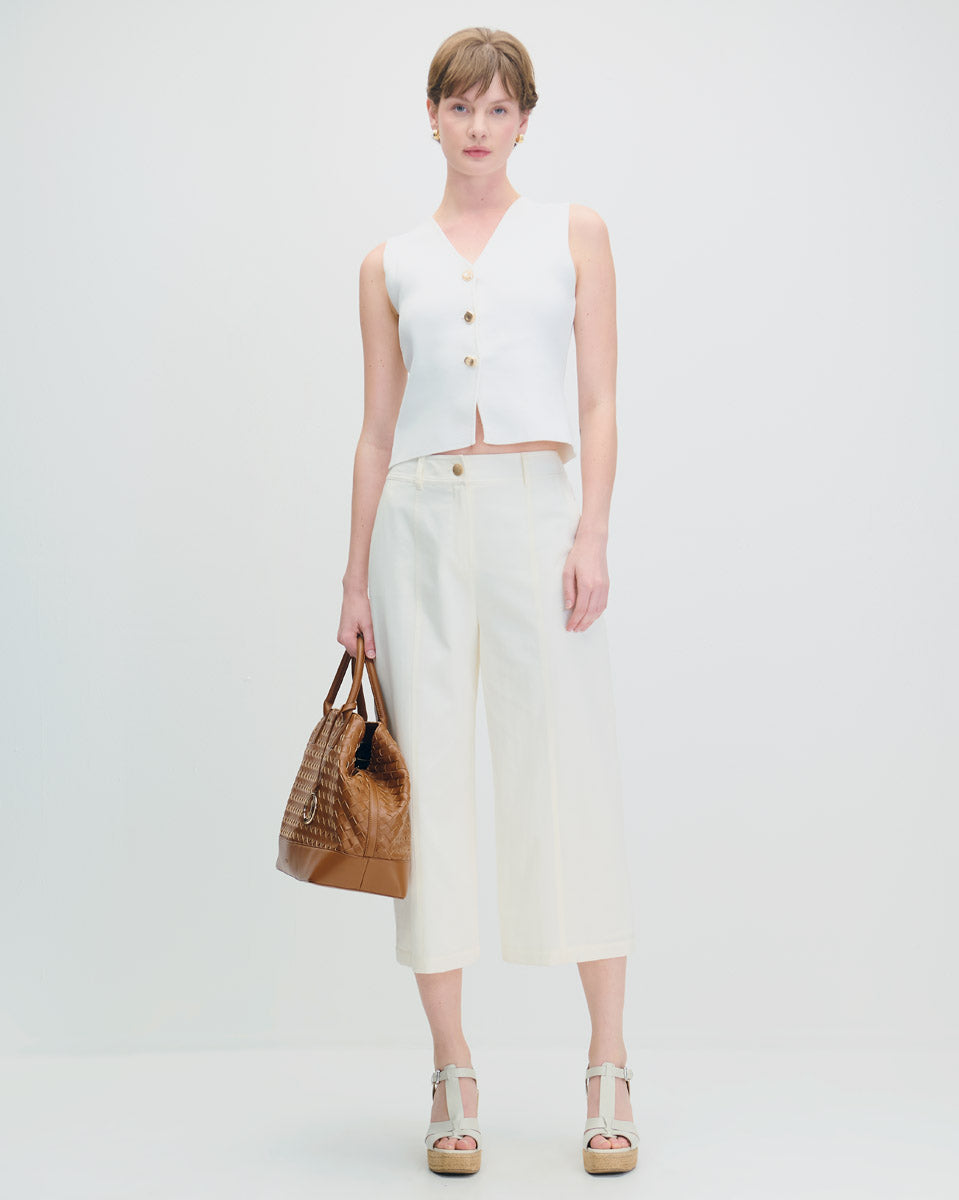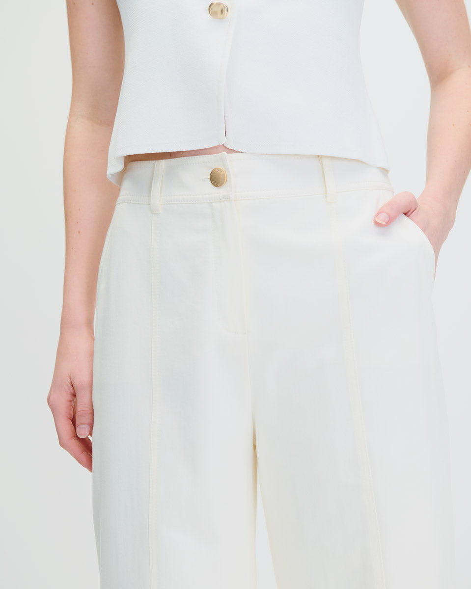 Pantalón con pretina, trabas y cortes