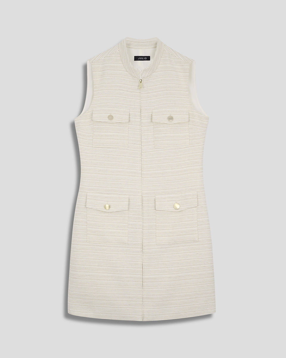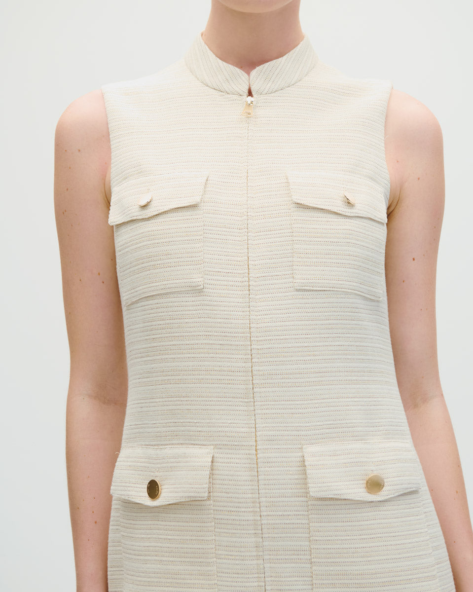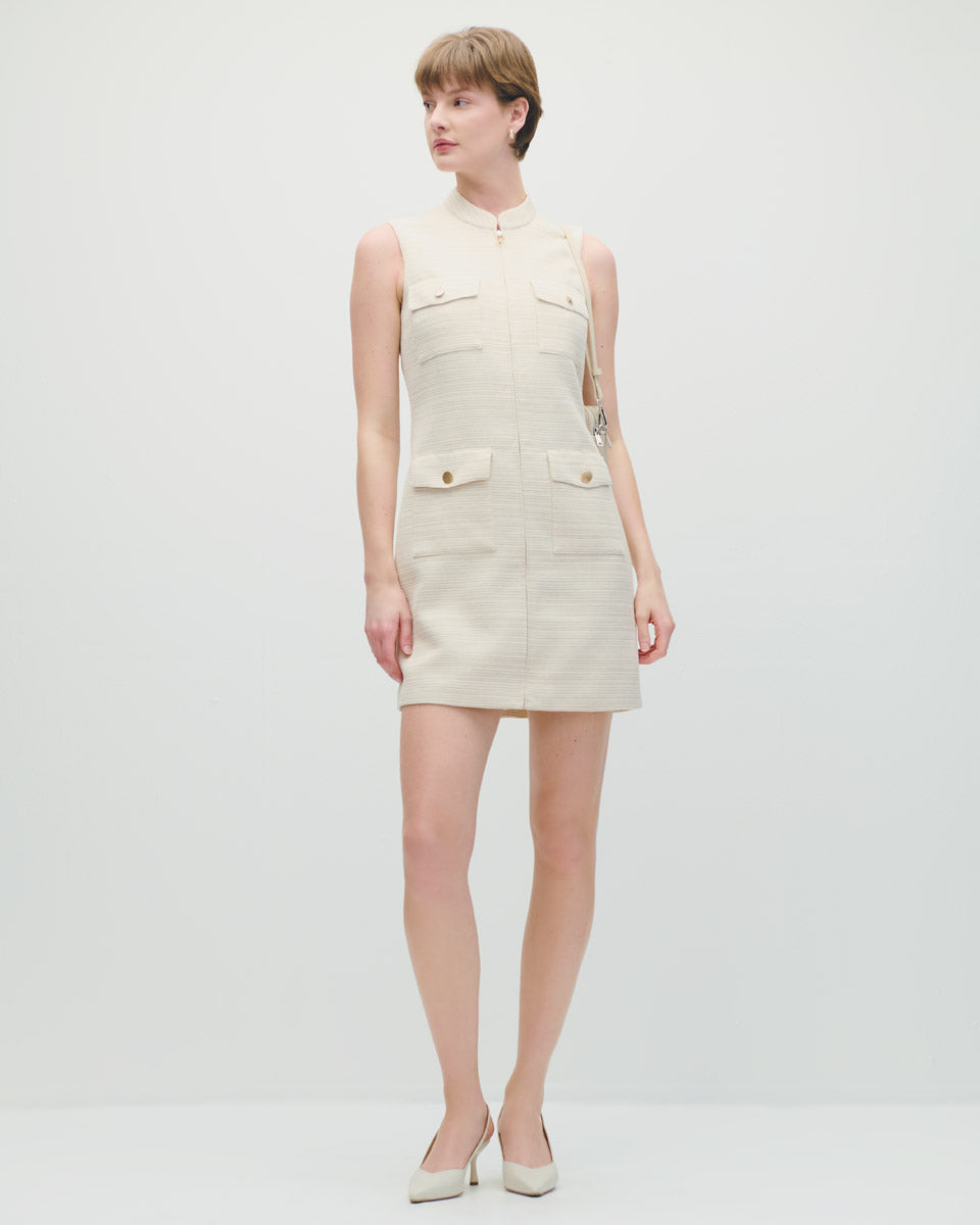 Vestido cuello mao con cierre delantero sin mangas