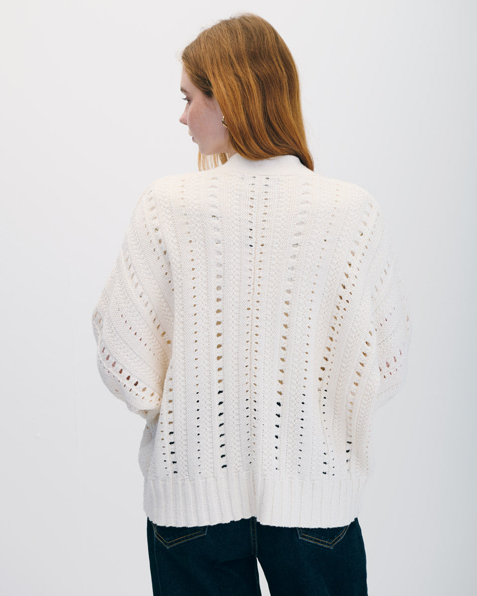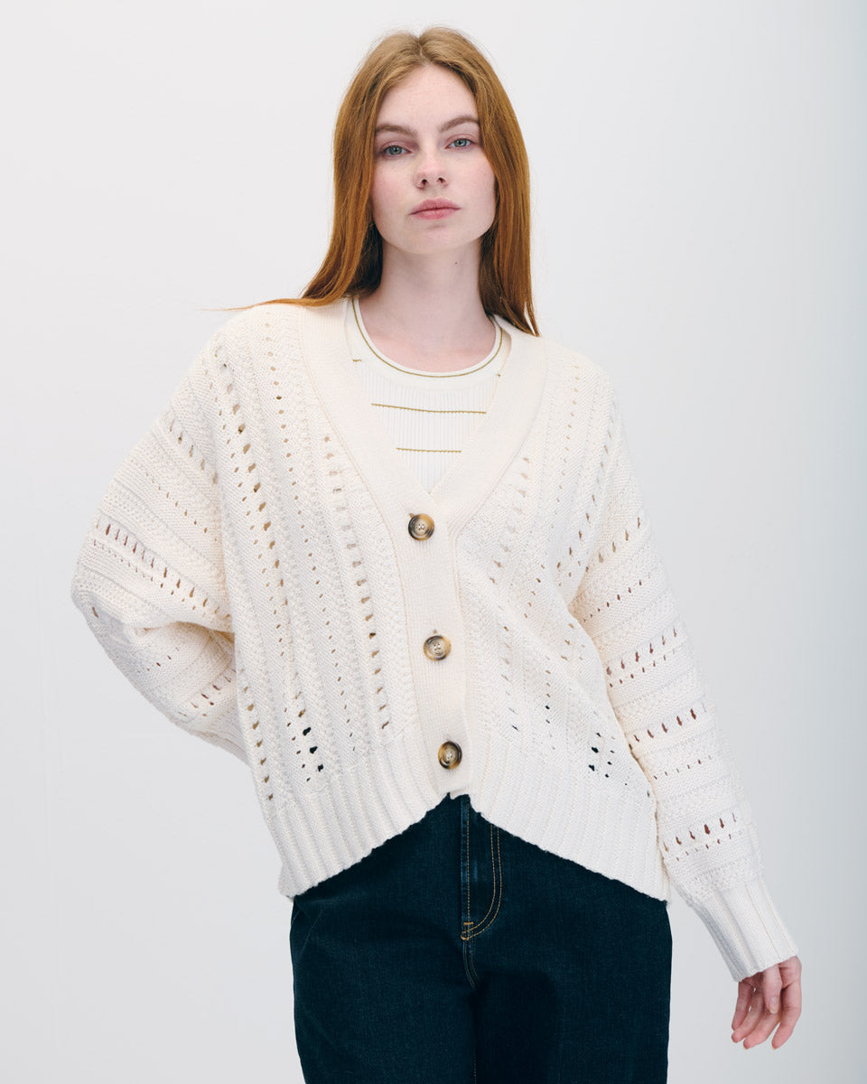 Cárdigan Tejido Calado Crema Manga Dolman