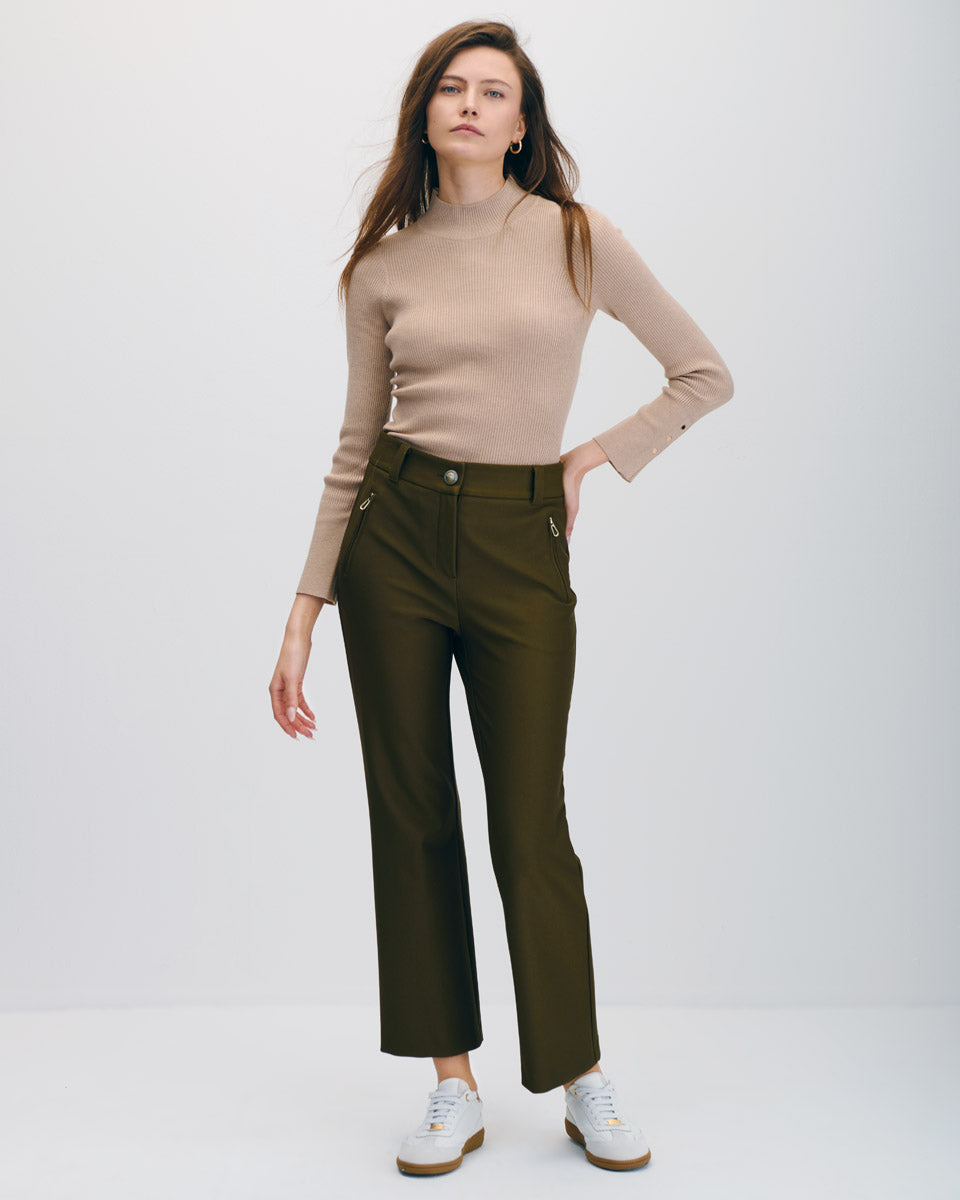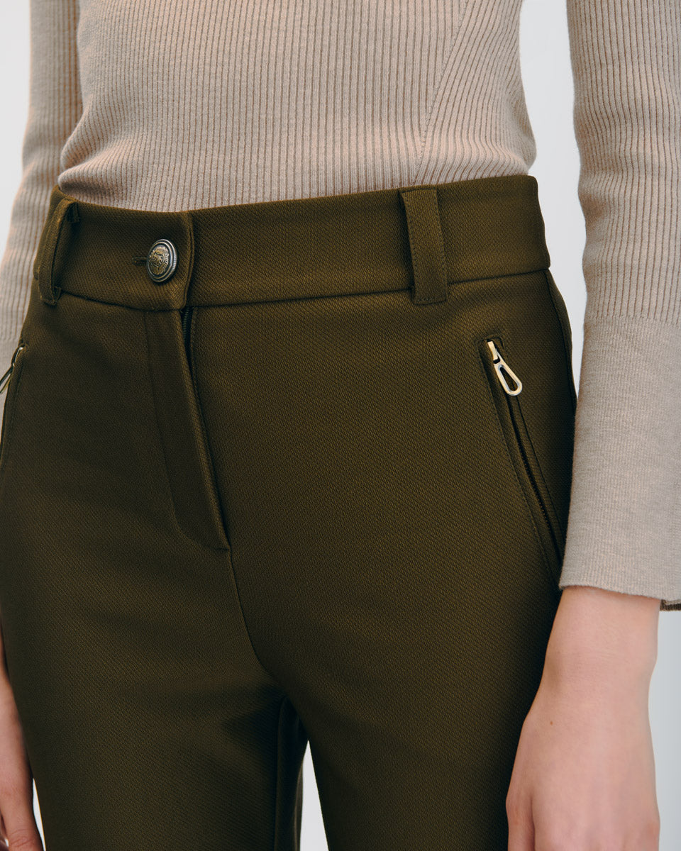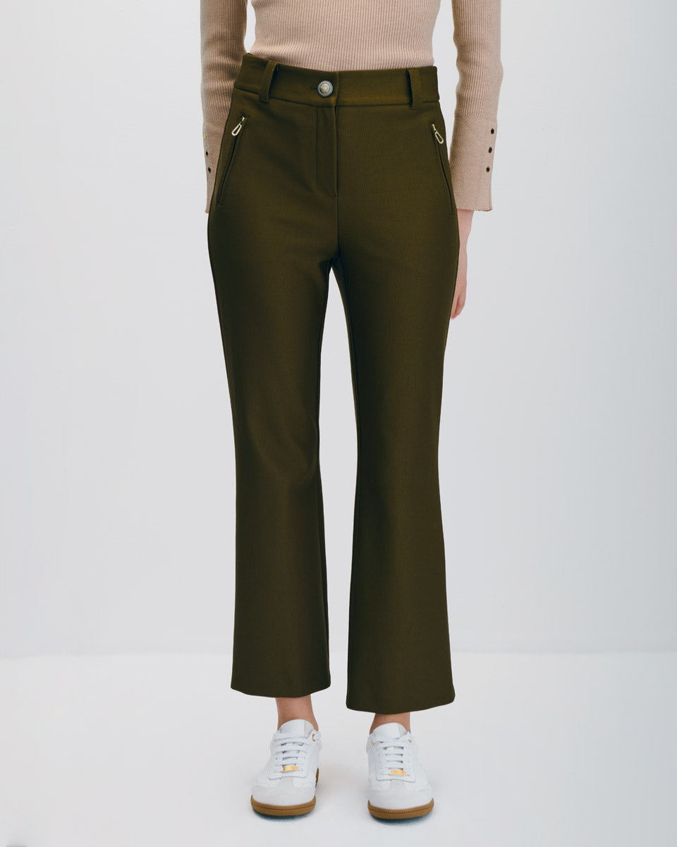 Pantalón De Punto Recto Tiro Alto Verde Militar