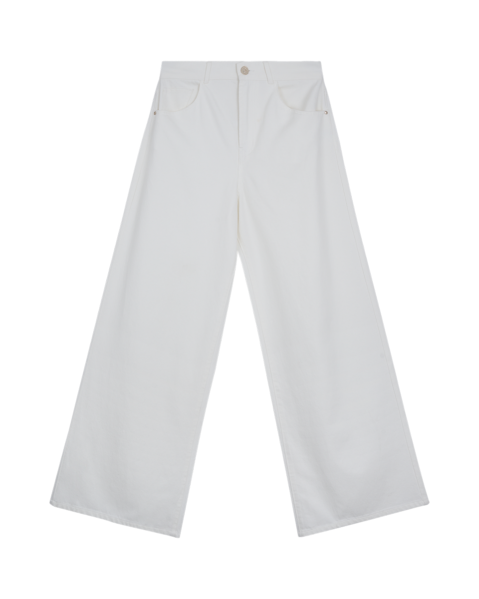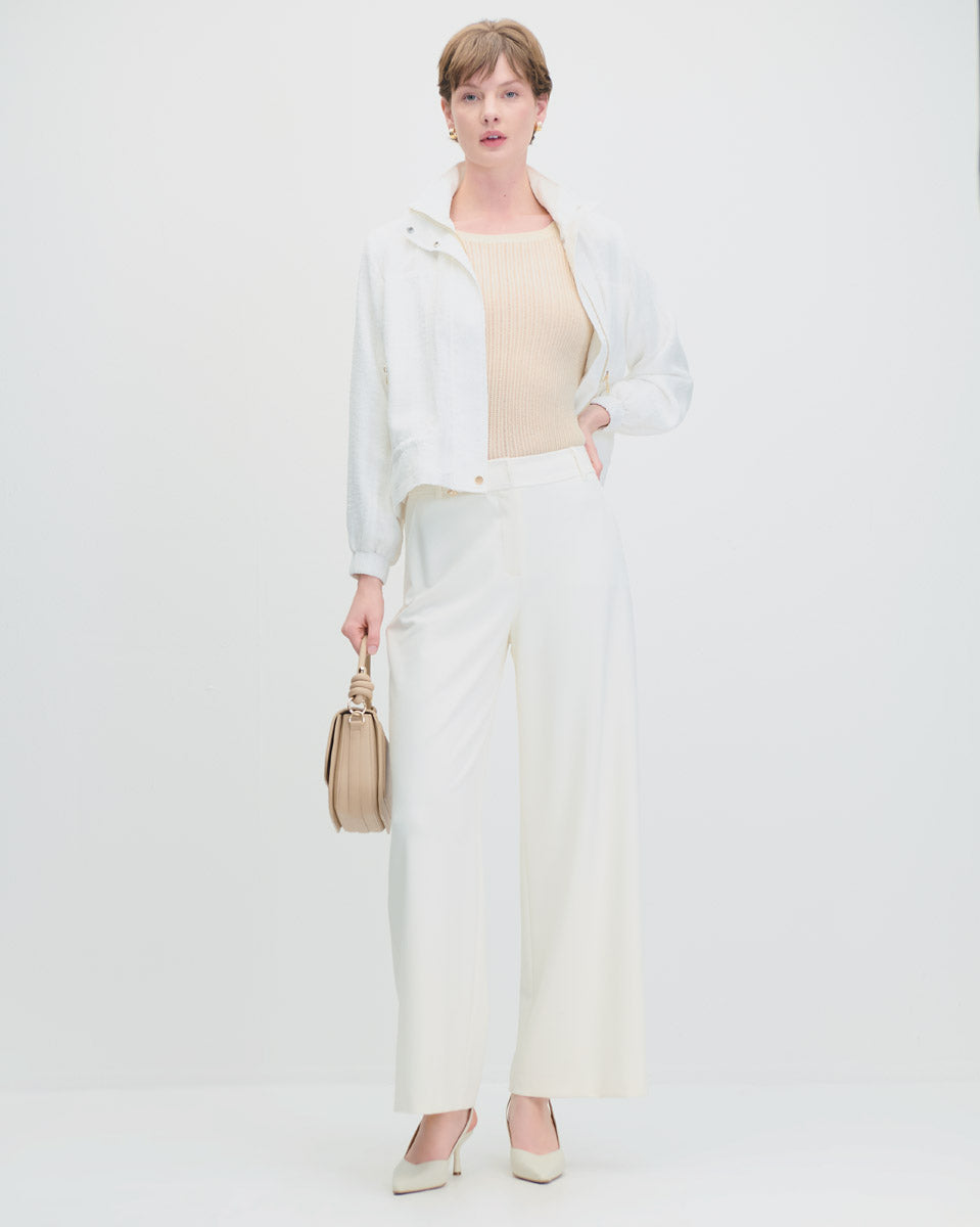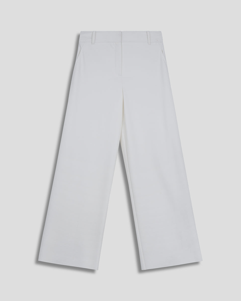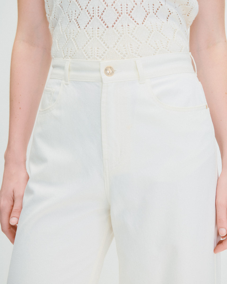 Pantalón Blanco Wide Leg Tiro Alto Detalle Fraccionado