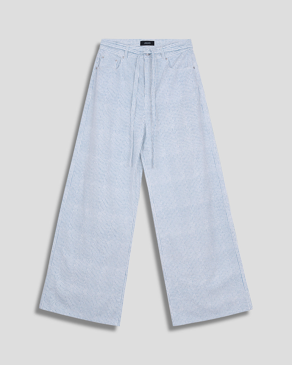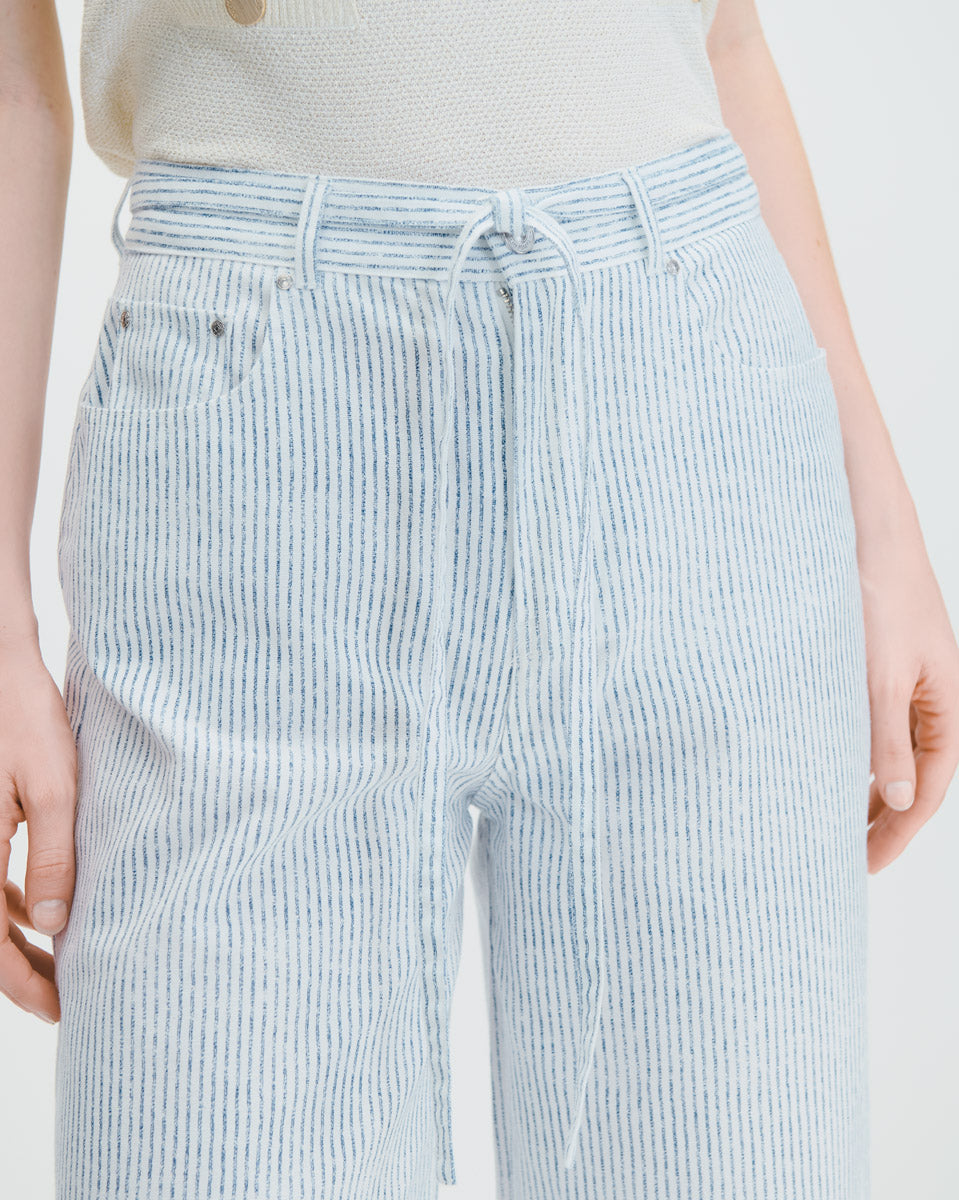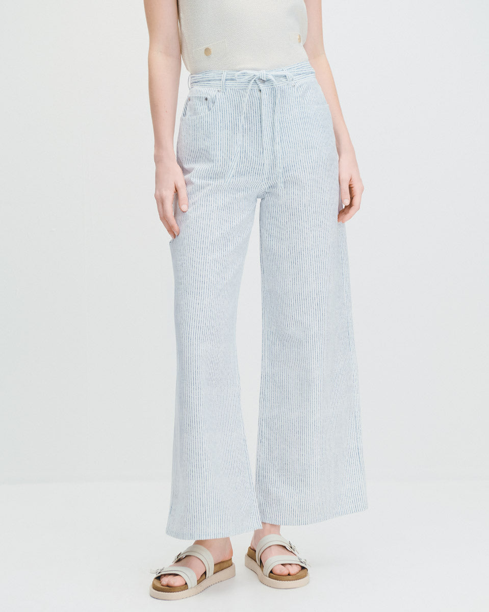 Pantalón Wide Leg Tiro Alto Tipo Jeans A Rayas Con Amarre