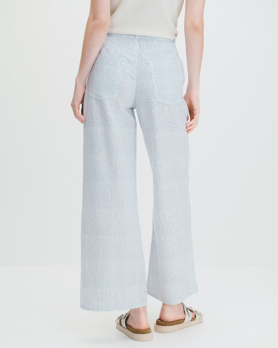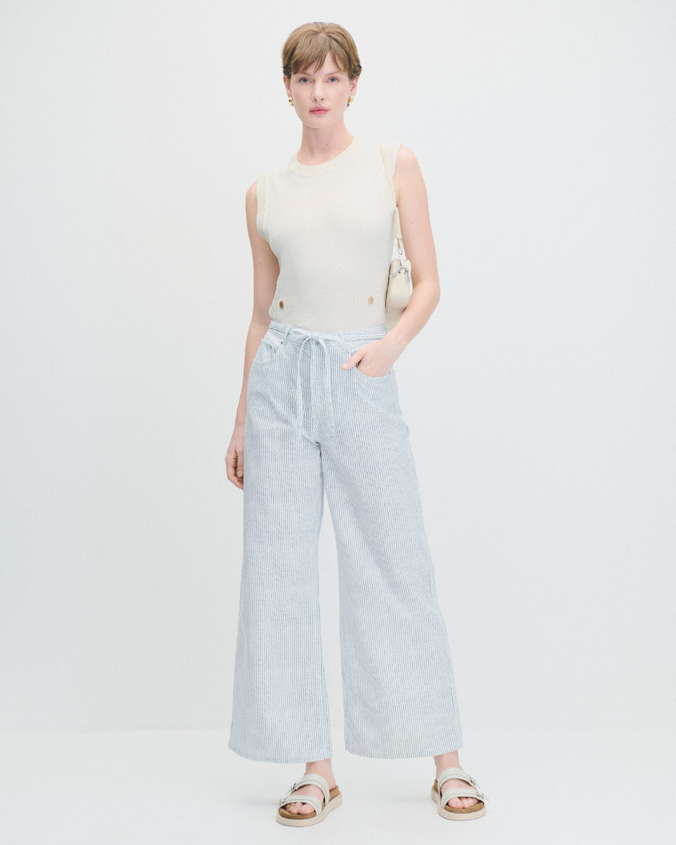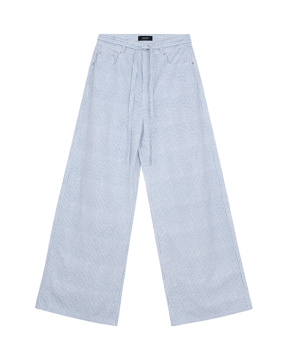 Pantalón Wide Leg Tiro Alto Tipo Jeans A Rayas Con Amarre